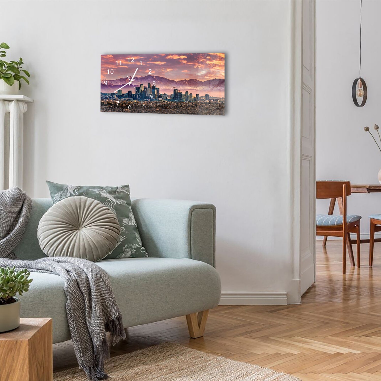 Wanduhr 60x30 - Los Angeles Skyline bei Sonnenuntergang