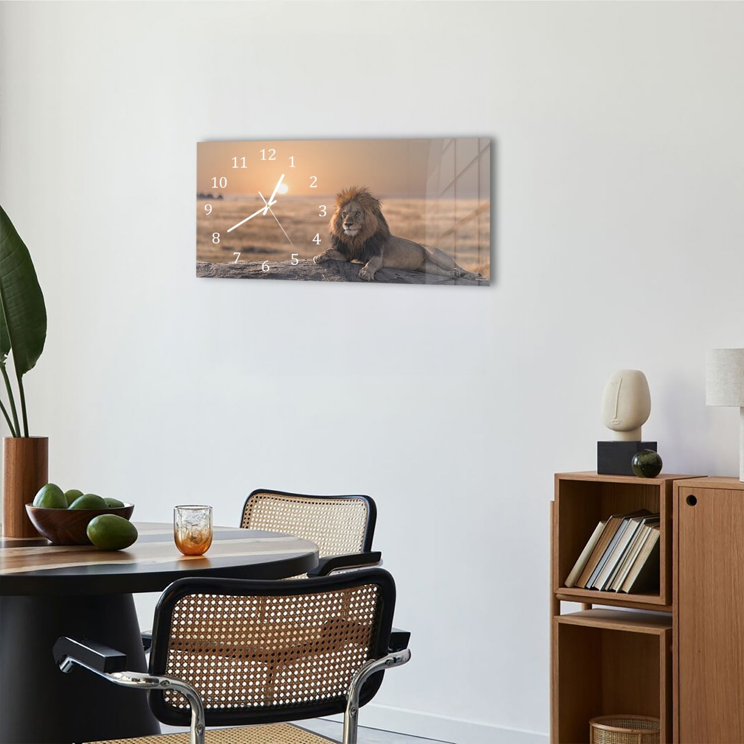 Wanduhr 60x30 - Löwe auf einem Felsen