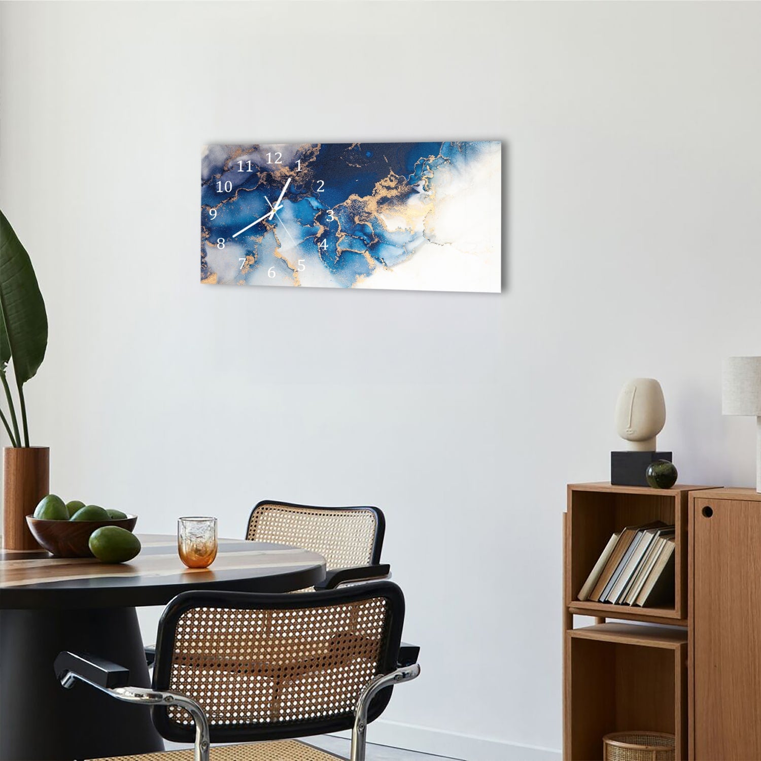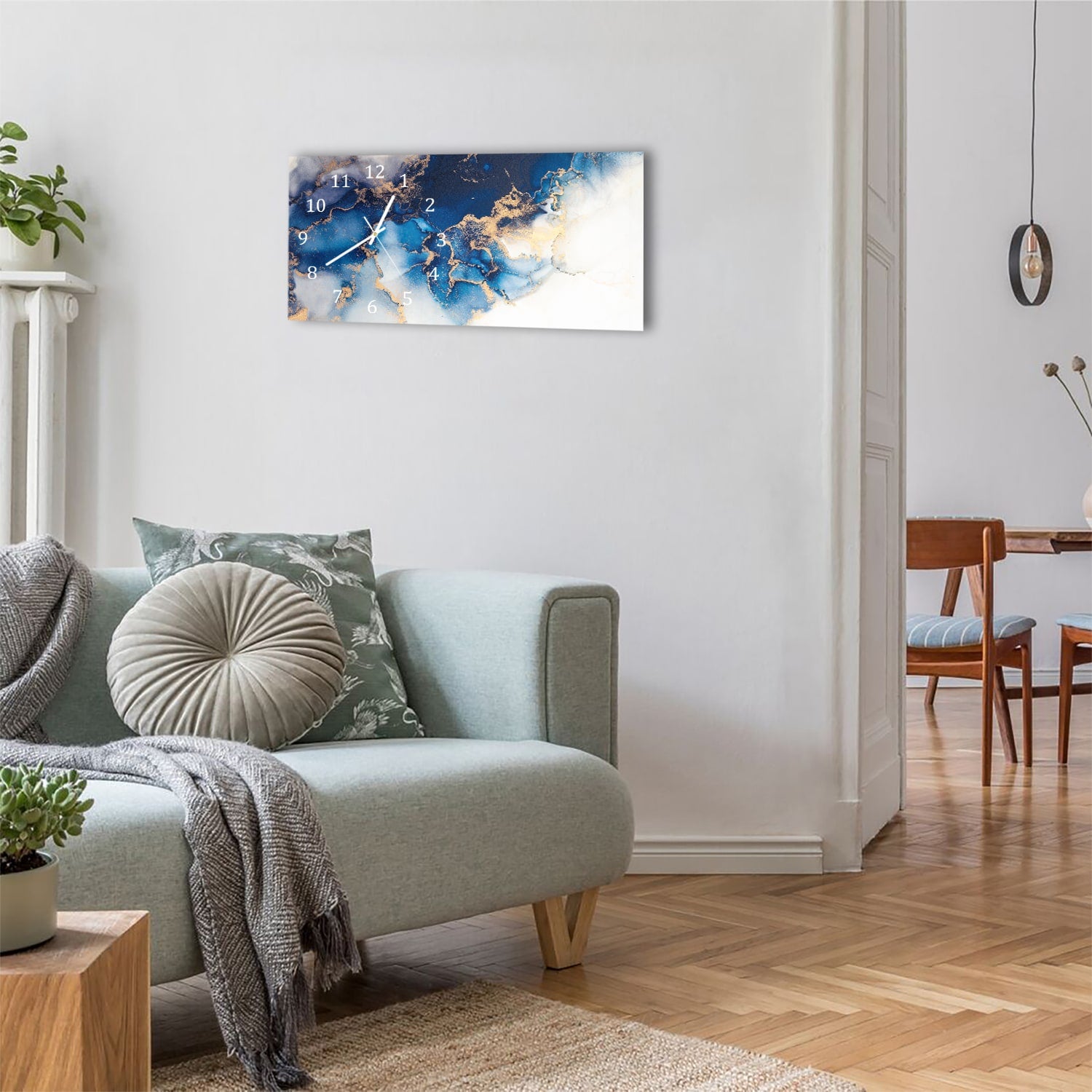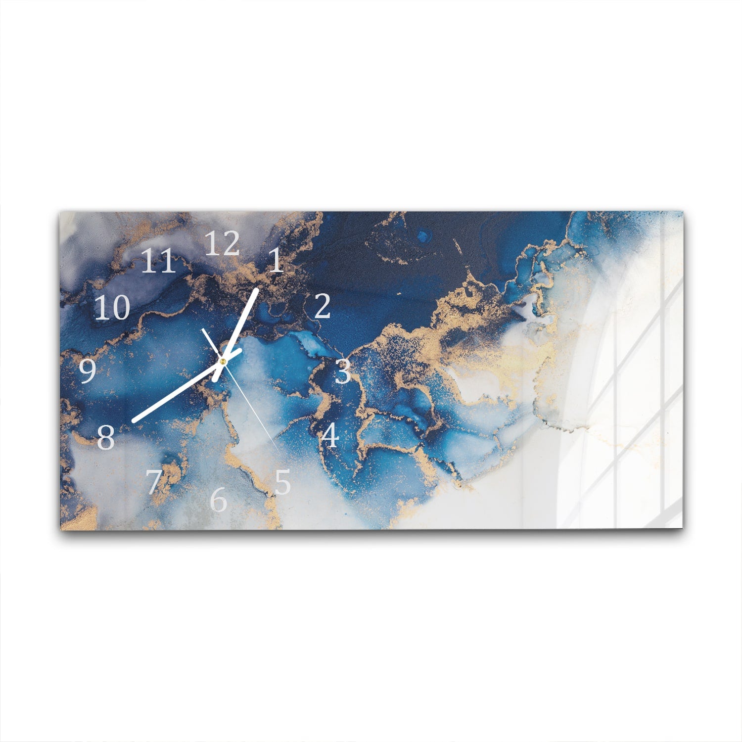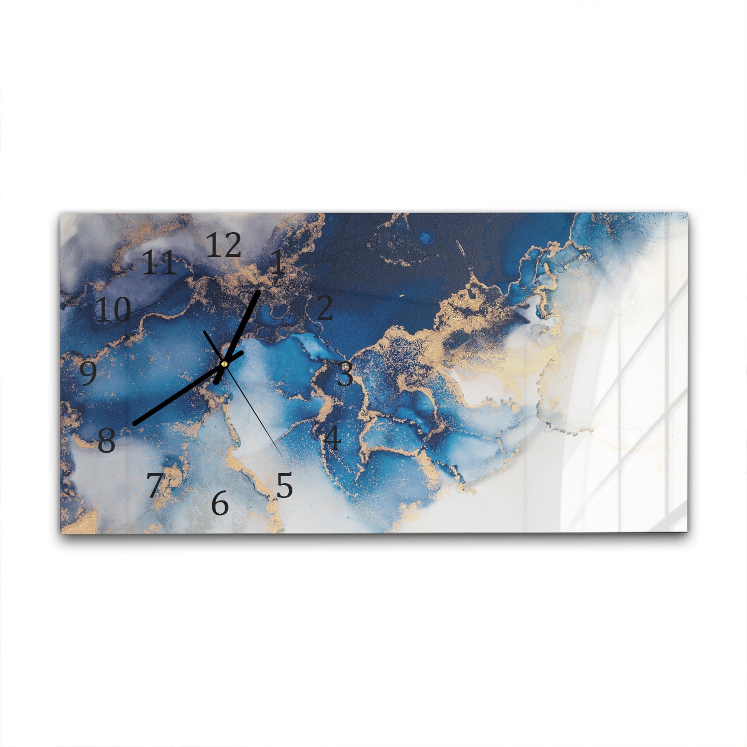 Wanduhr 60x30 - Luxuriöser Blau-Gold-Marmor