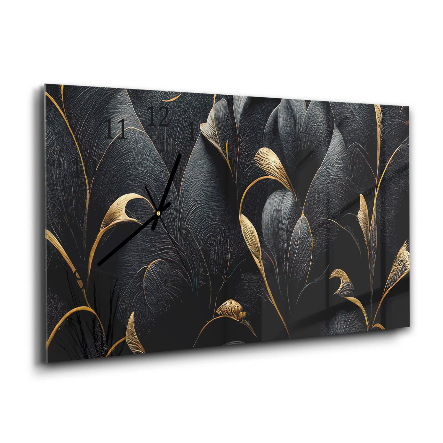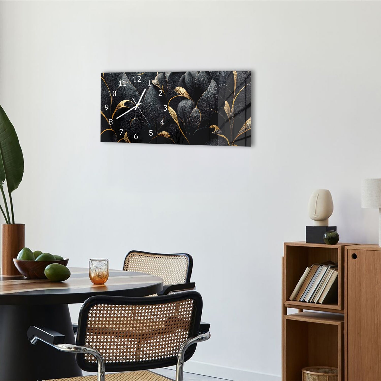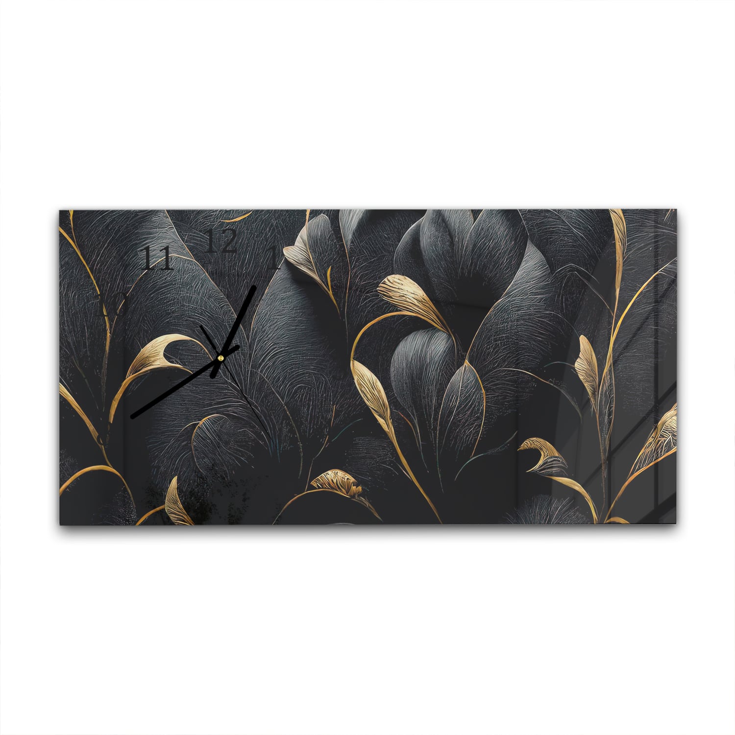 Wanduhr 60x30 - Luxuriöses Schwarz-Gold-Blumenmuster