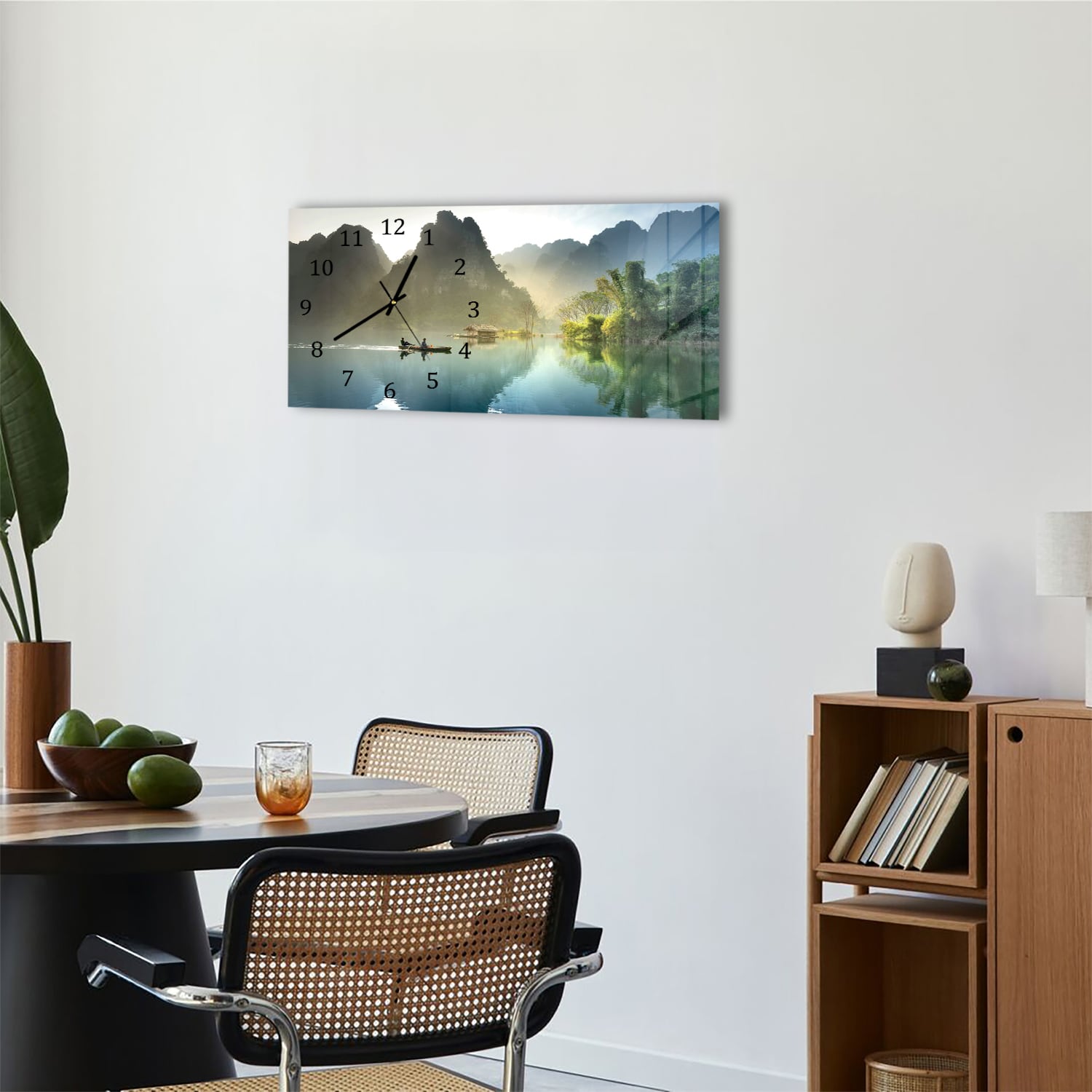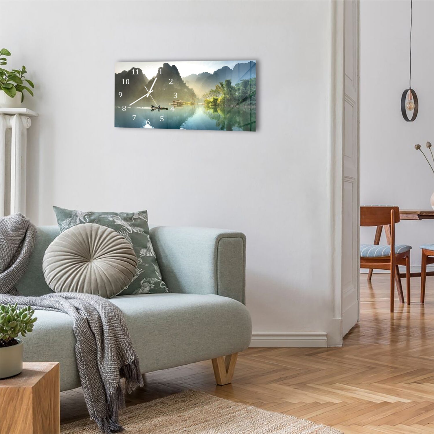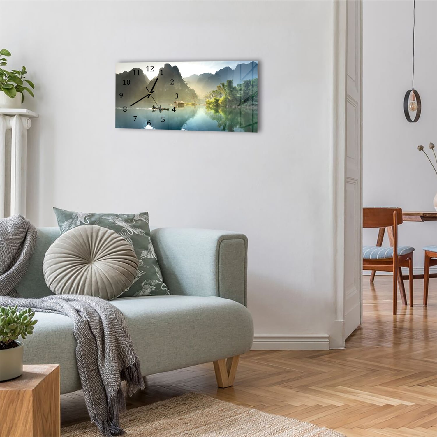 Wanduhr 60x30 - Nebelige Berge