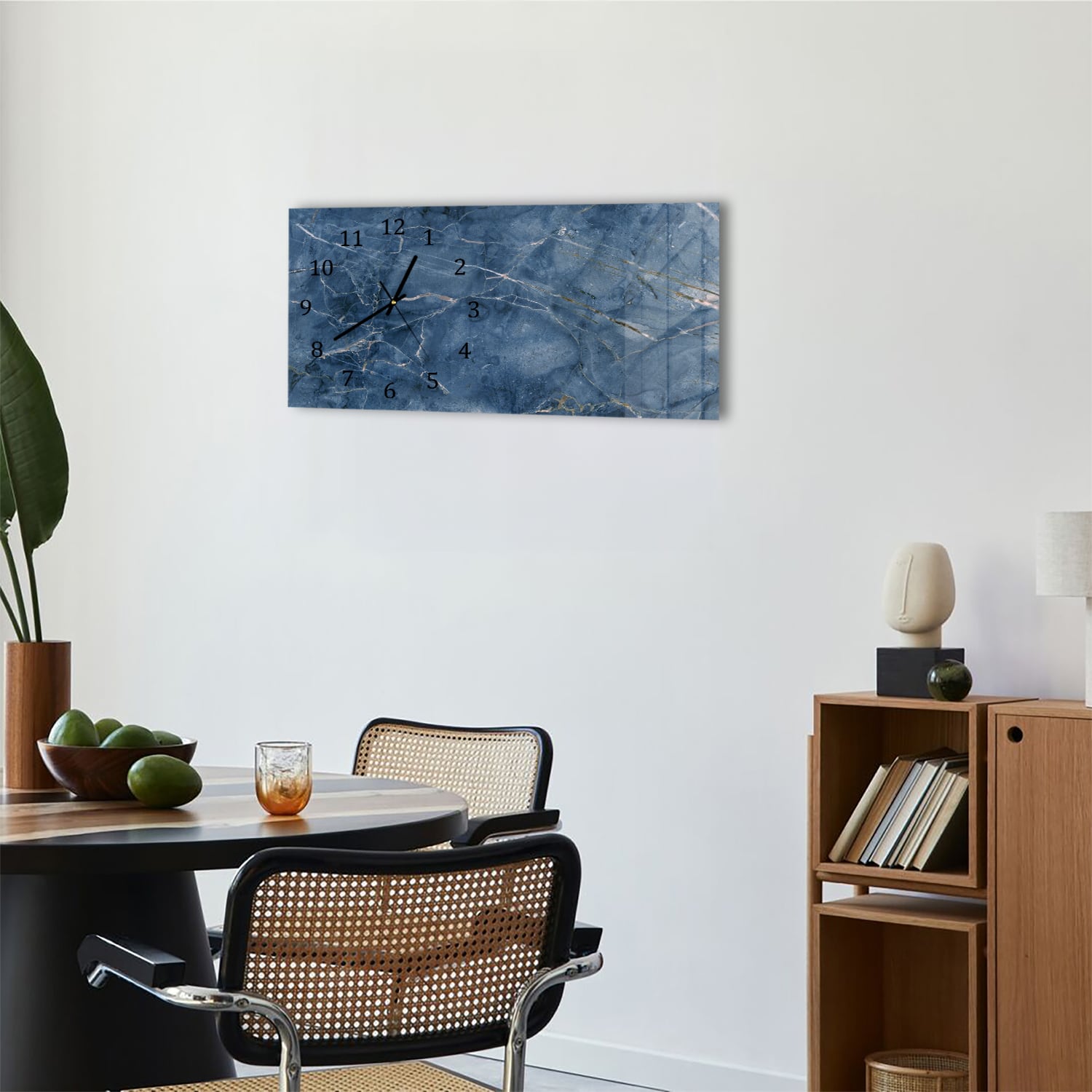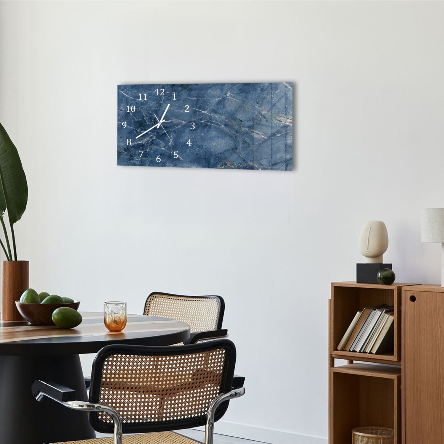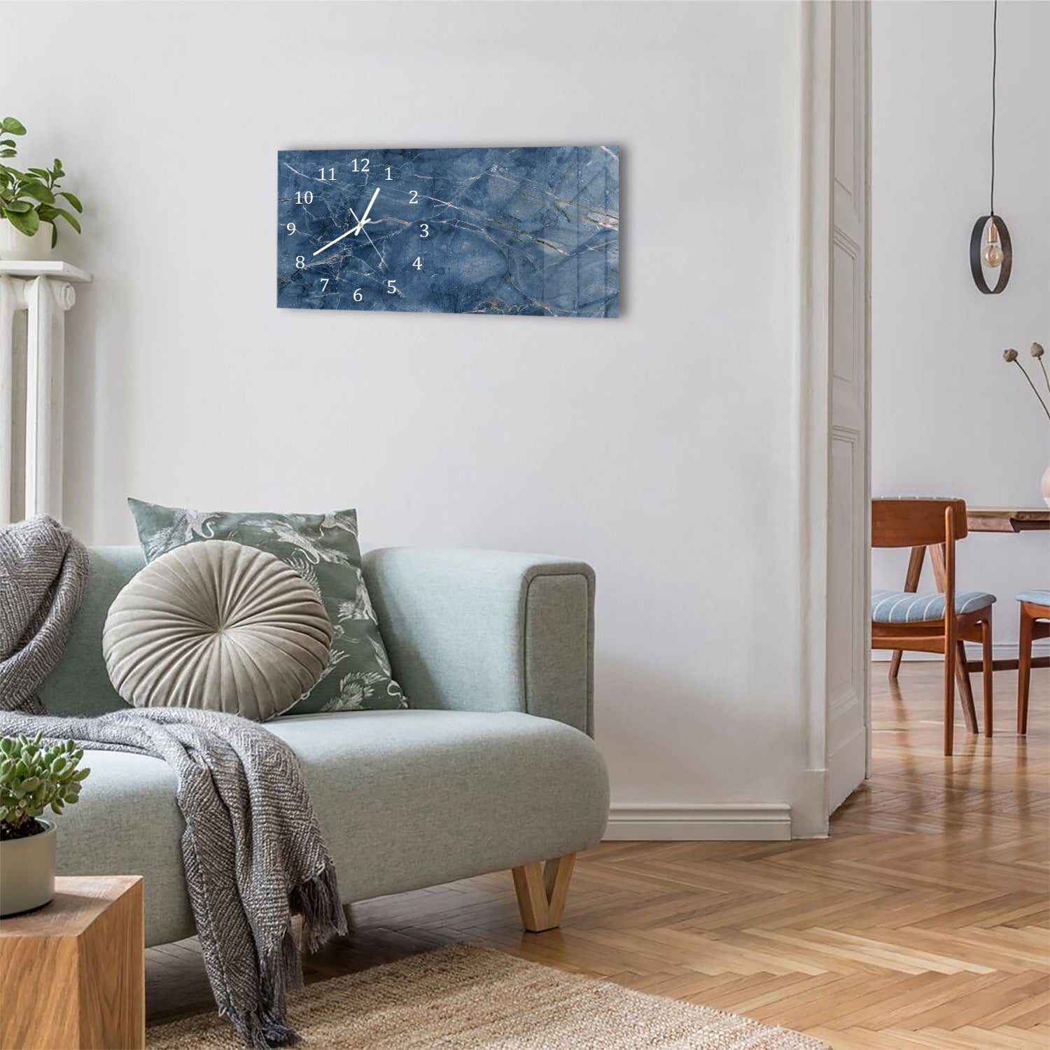 Wanduhr 60x30 - Ozeanblauer Marmor