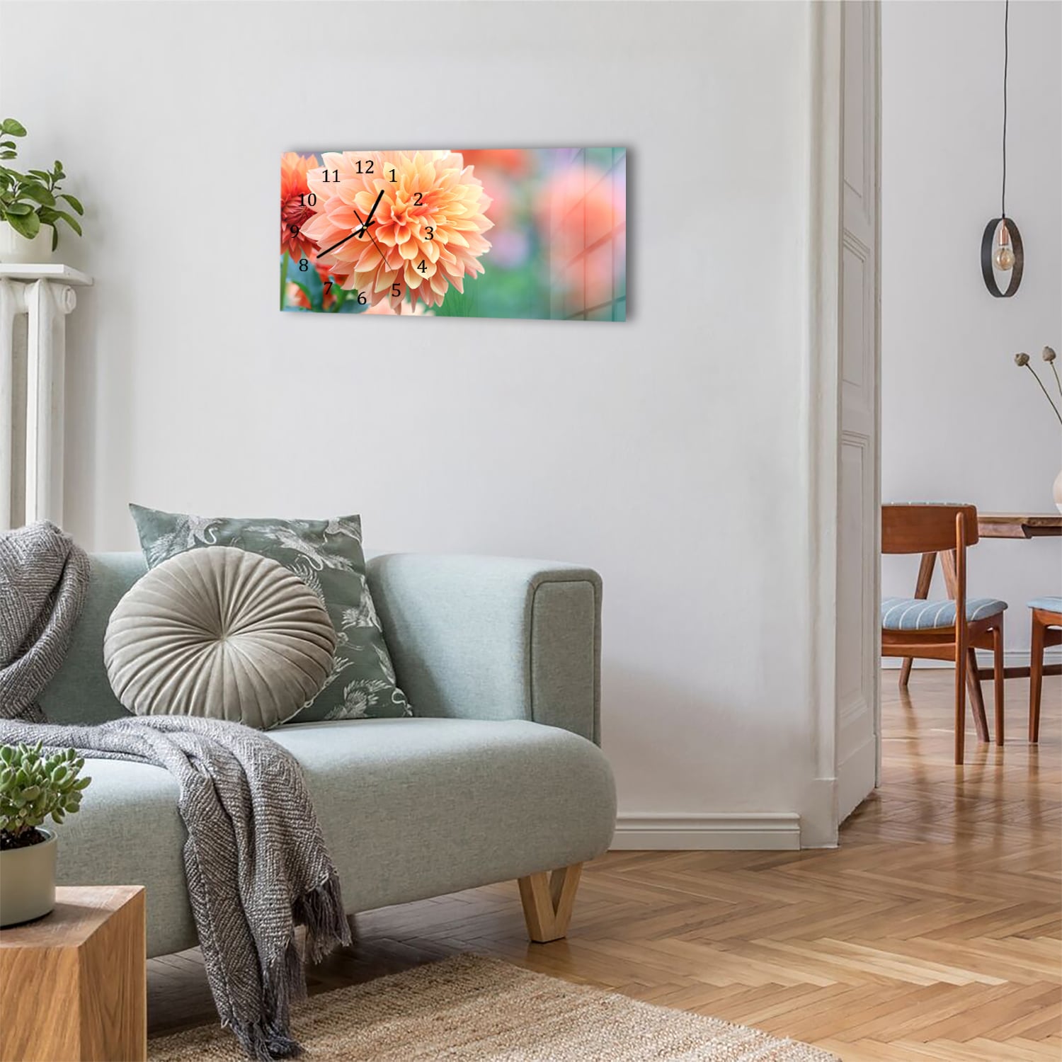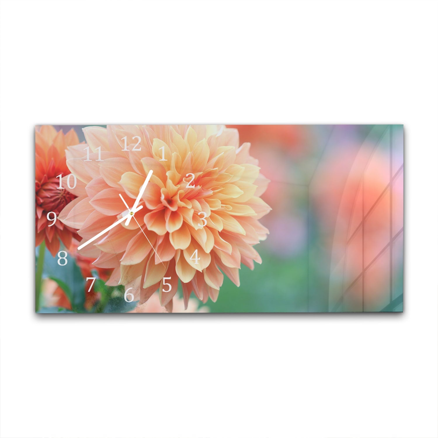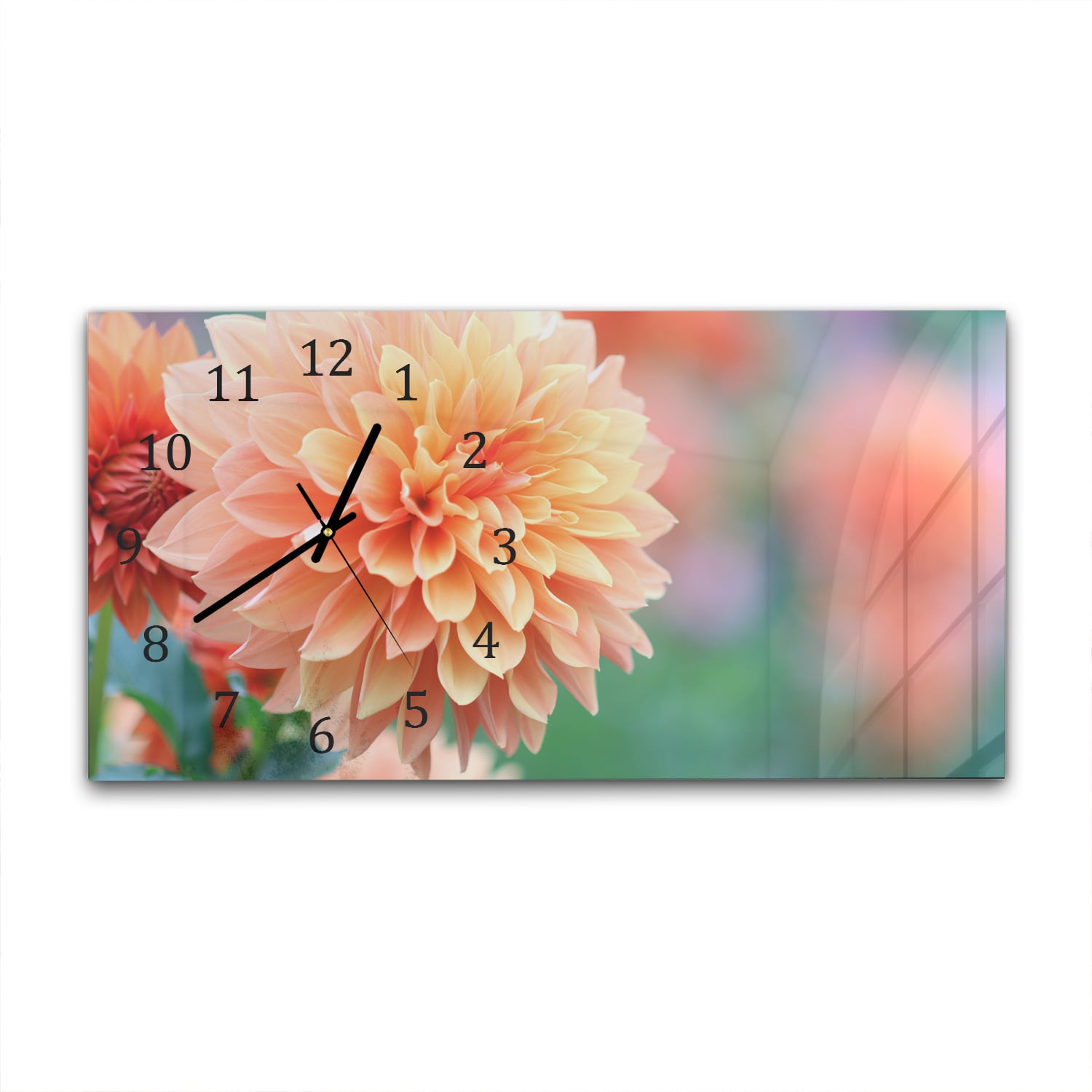 Wanduhr 60x30 - Rosa/Gelbe Dahlie