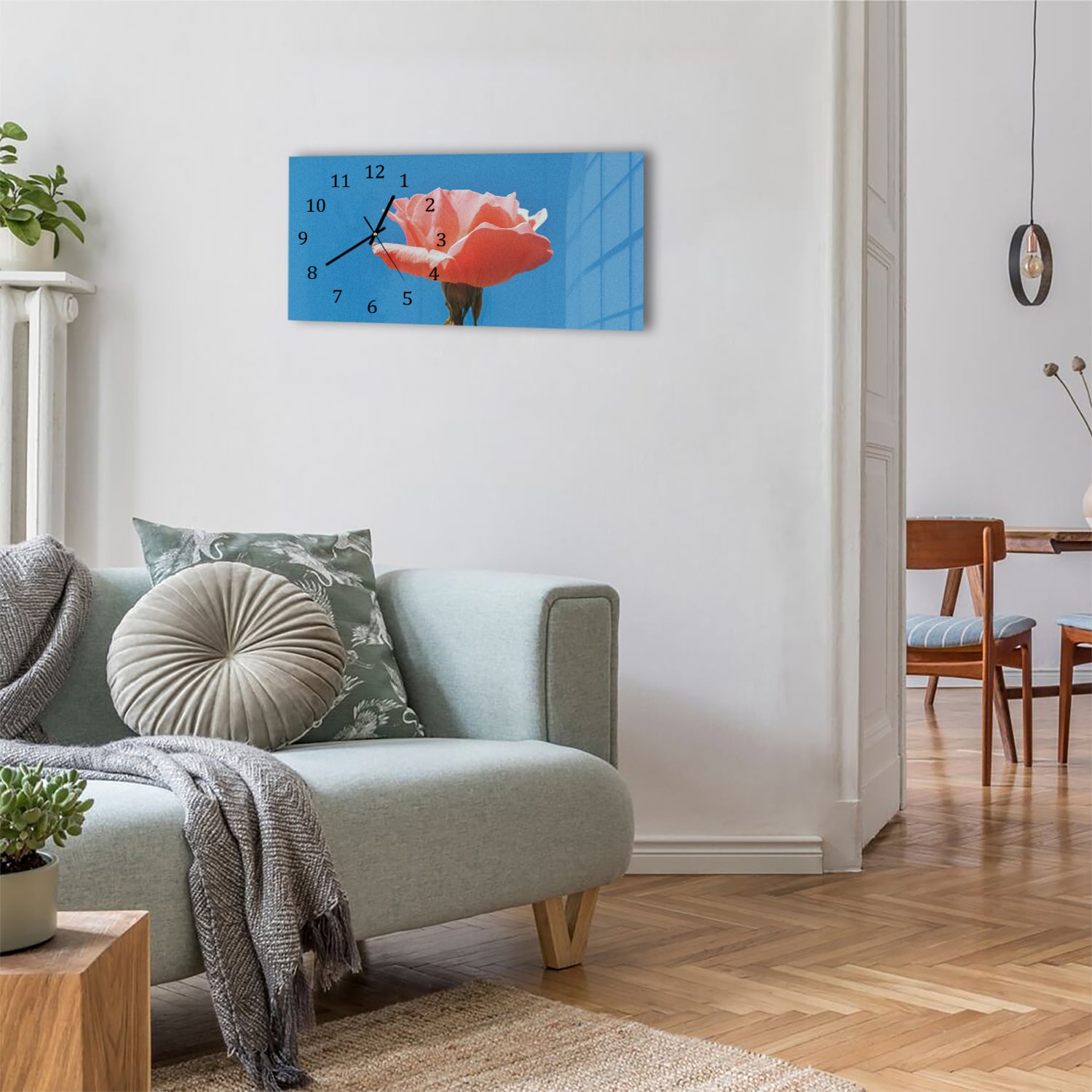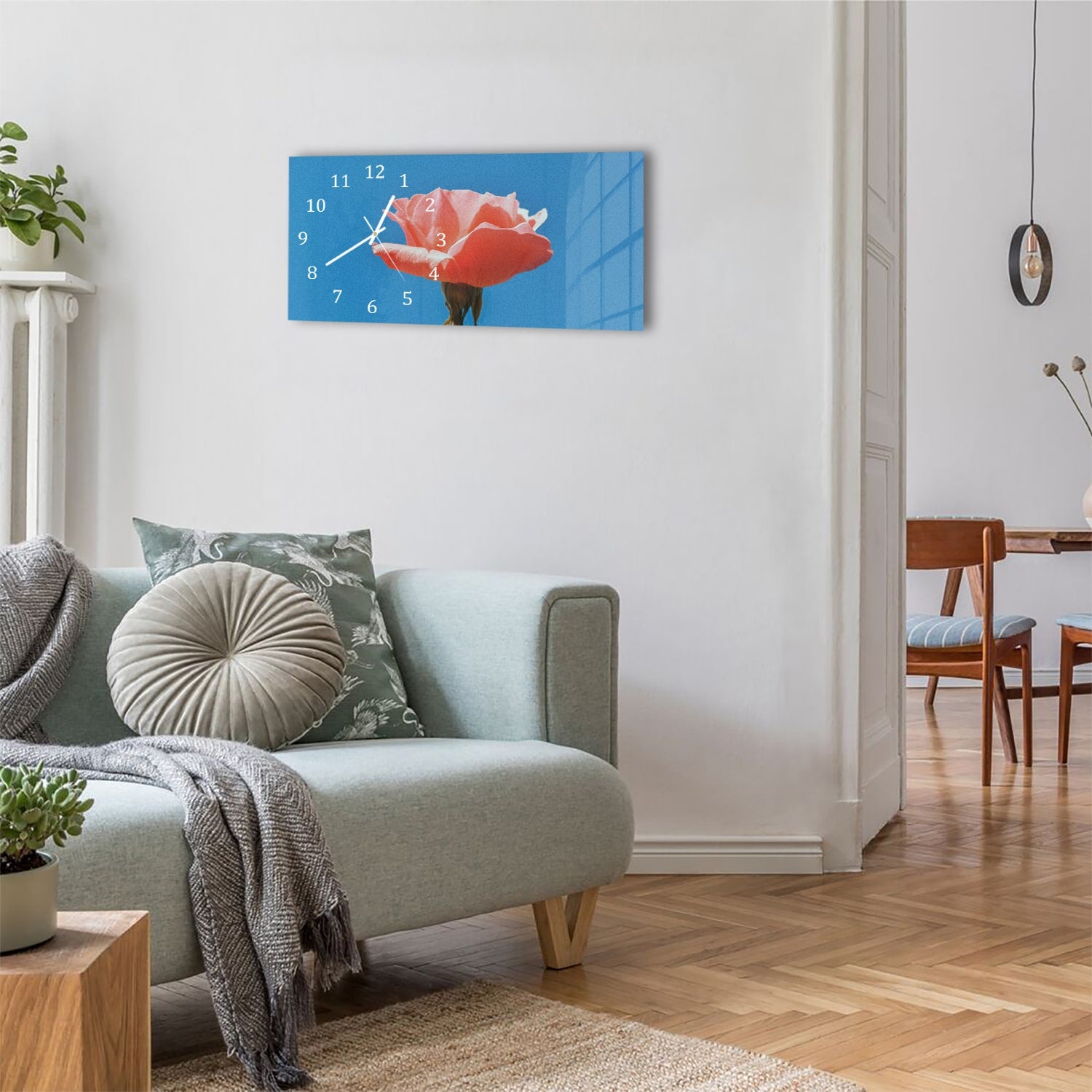 Wanduhr 60x30 - Rose mit blauem Himmel
