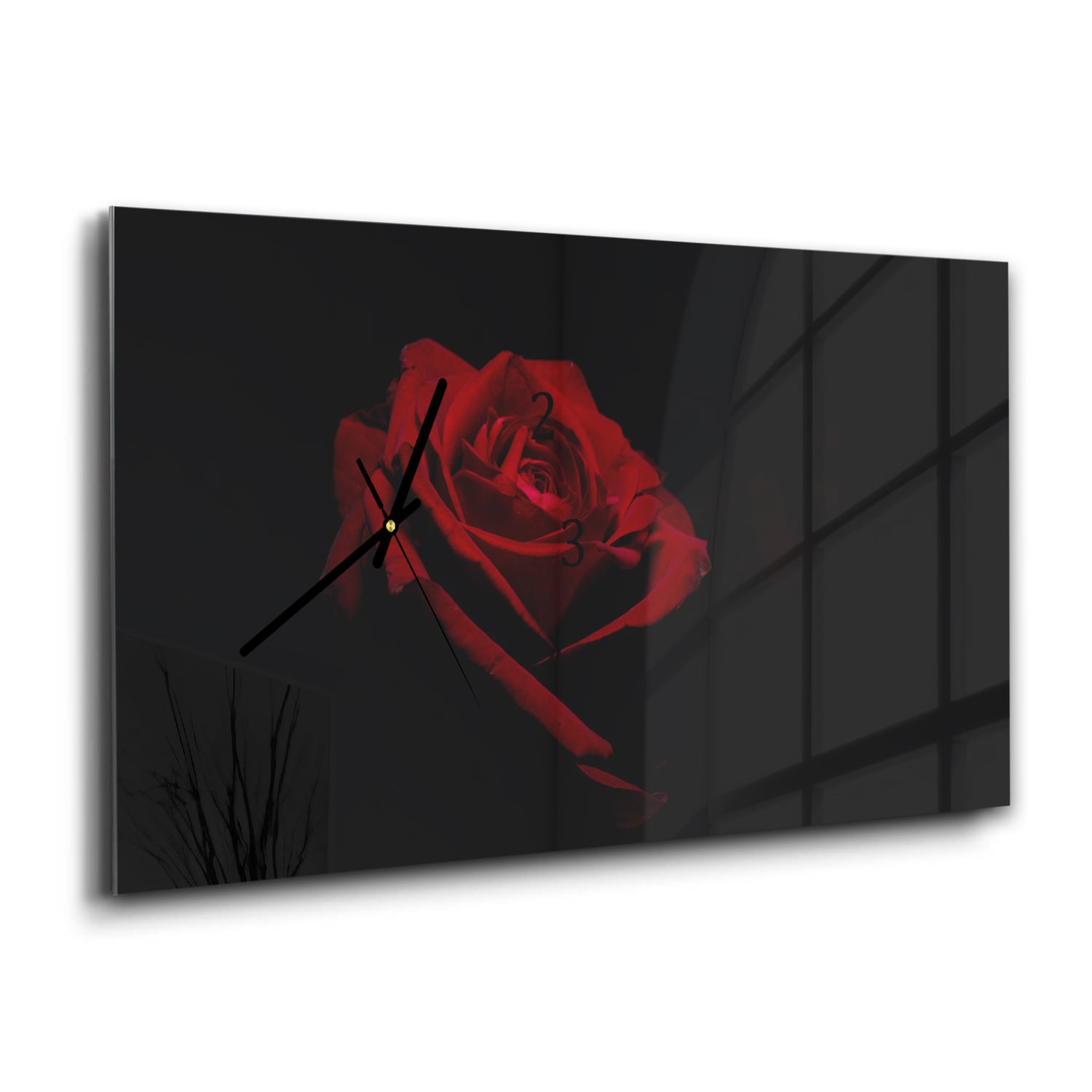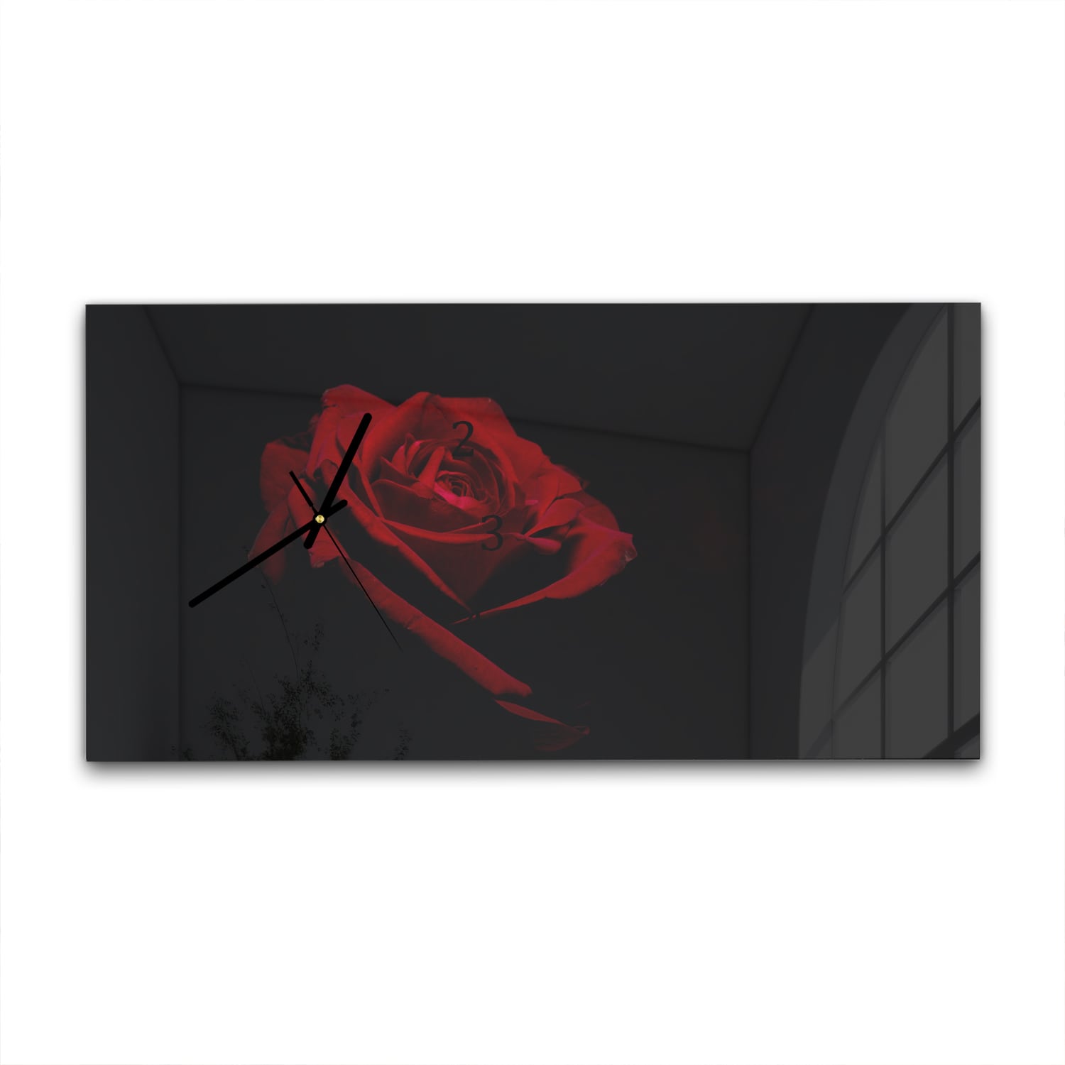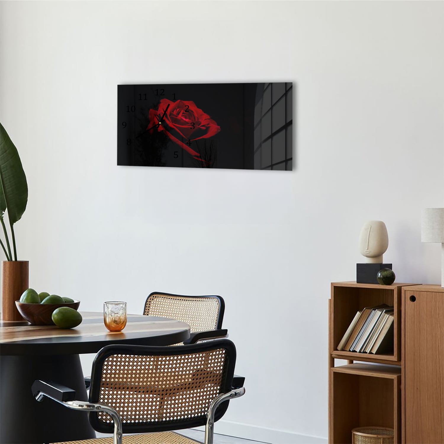 Wanduhr 60x30 - Rote Rose im Dunkeln