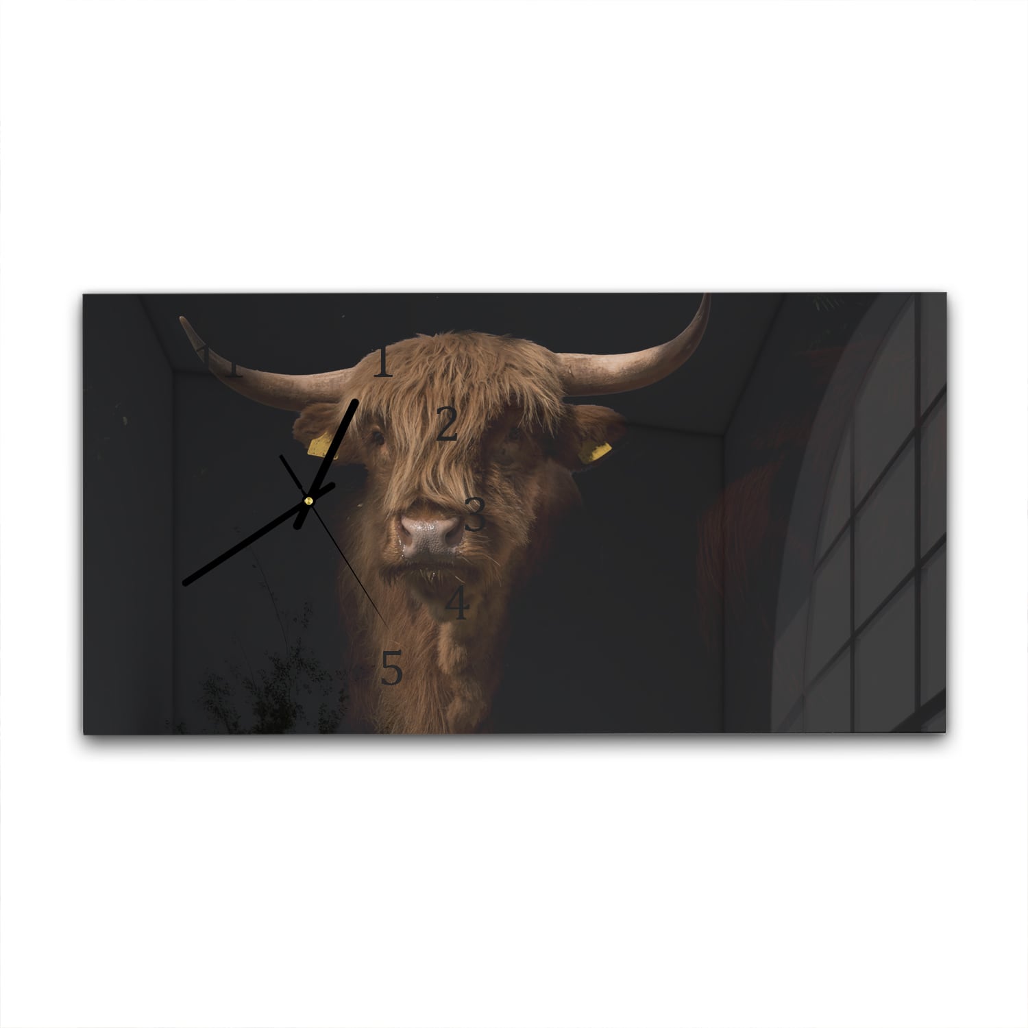 Wanduhr 60x30 - Schottisches Hochlandrind im Dunkeln
