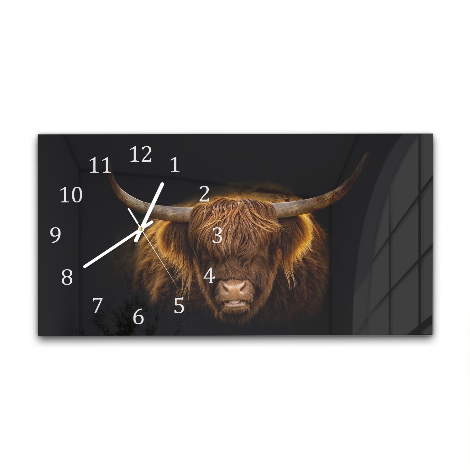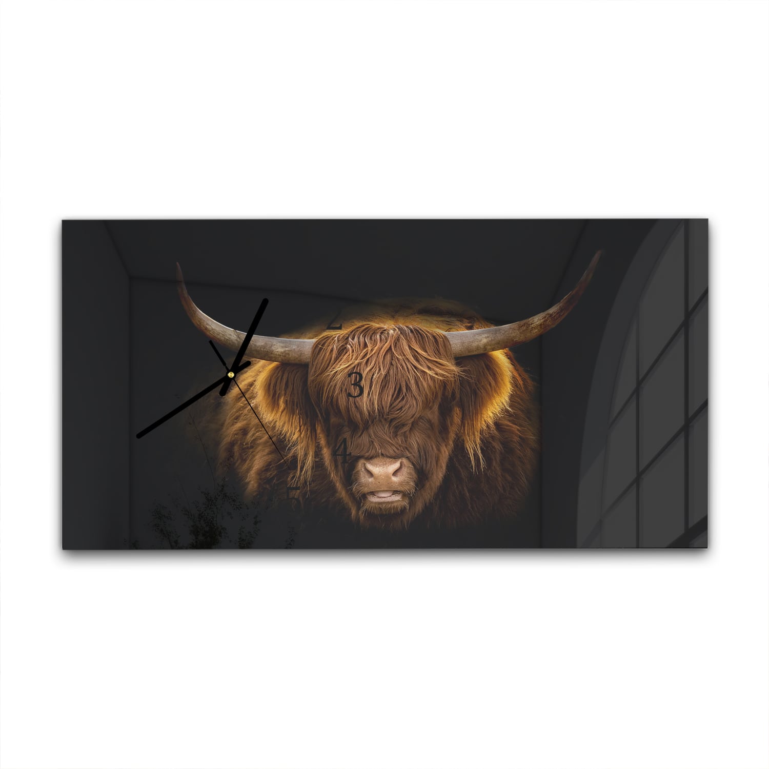 Wanduhr 60x30 - Schottisches Hochlandrind im Winter