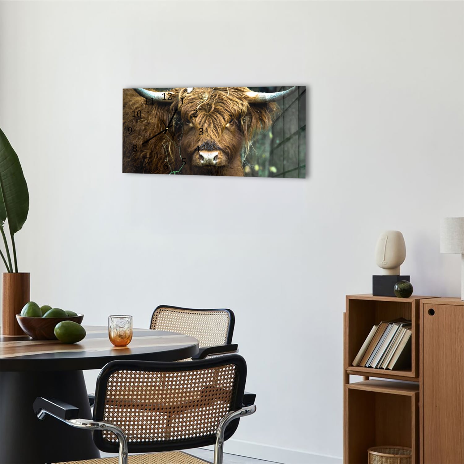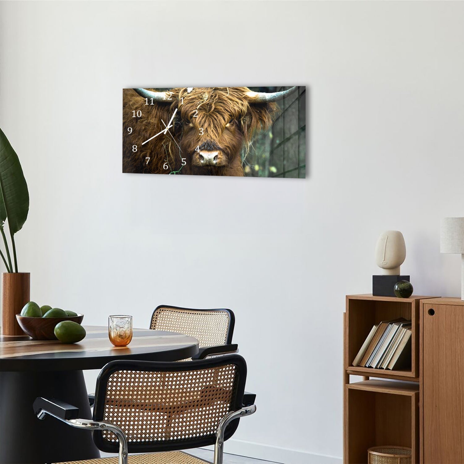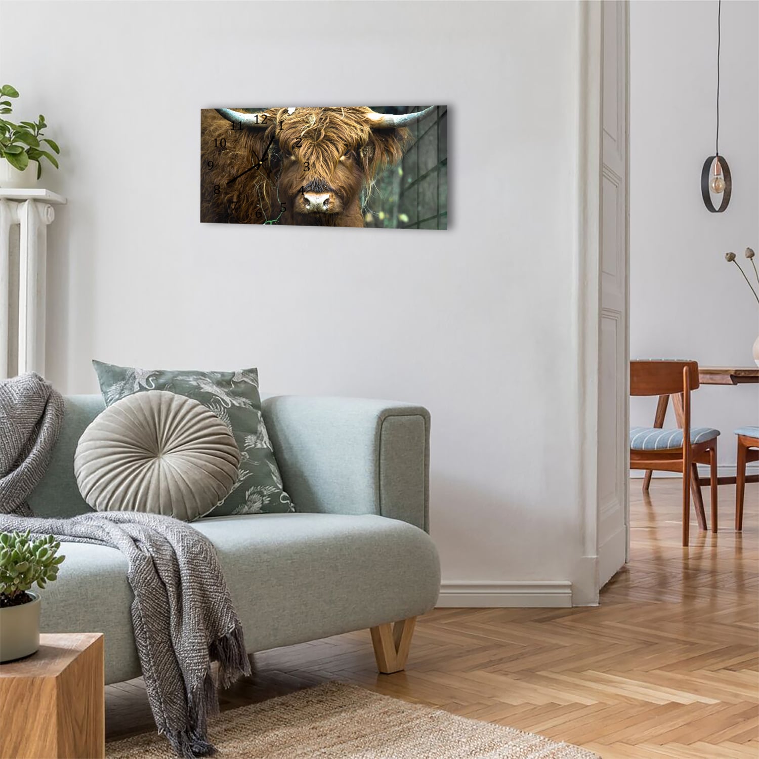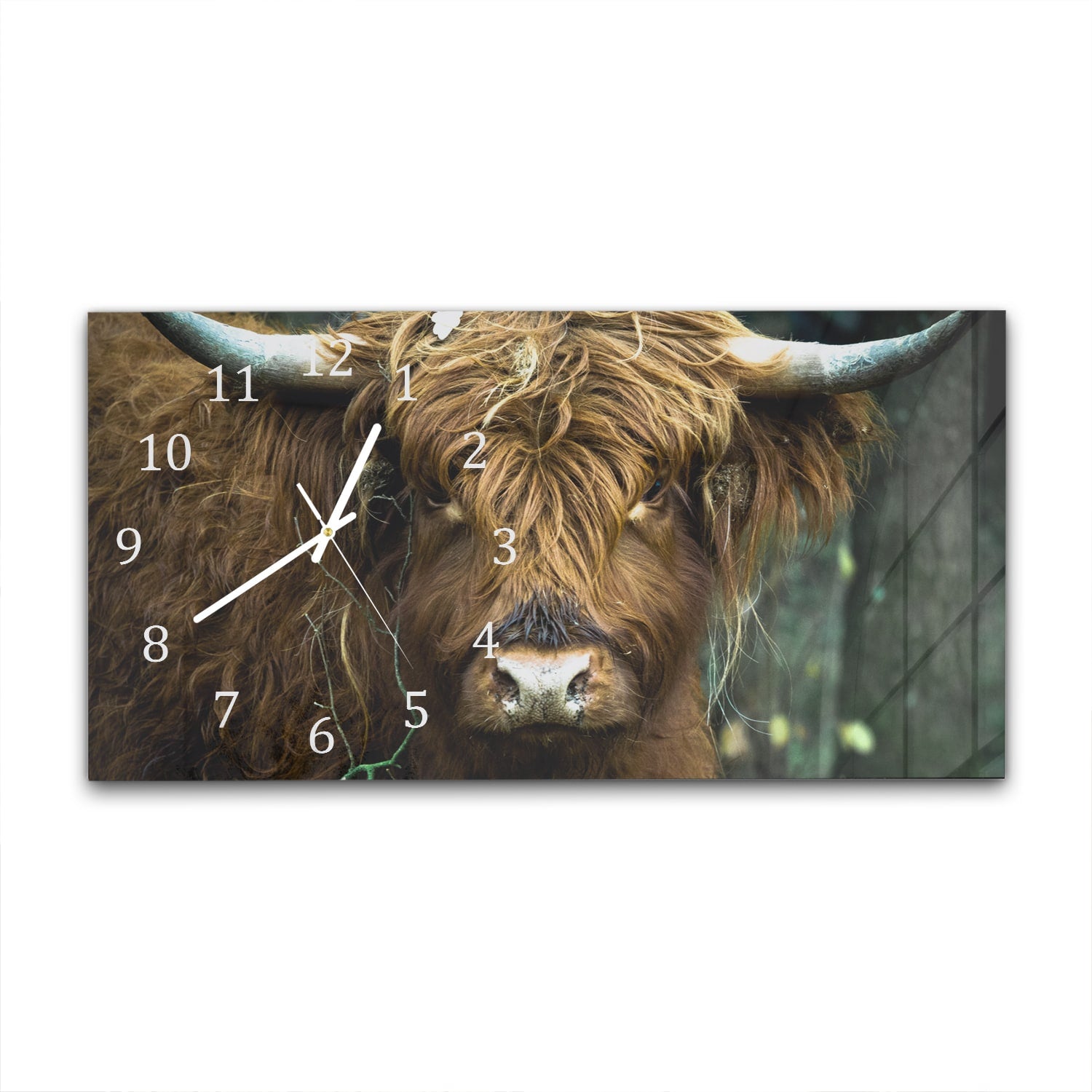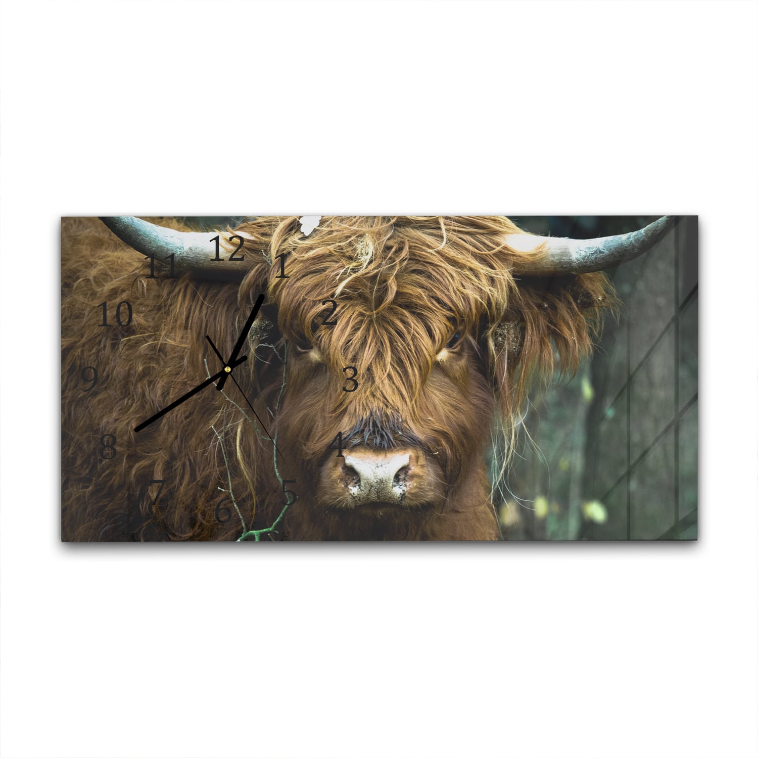 Wanduhr 60x30 - Schottisches Hochlandrind-Porträt