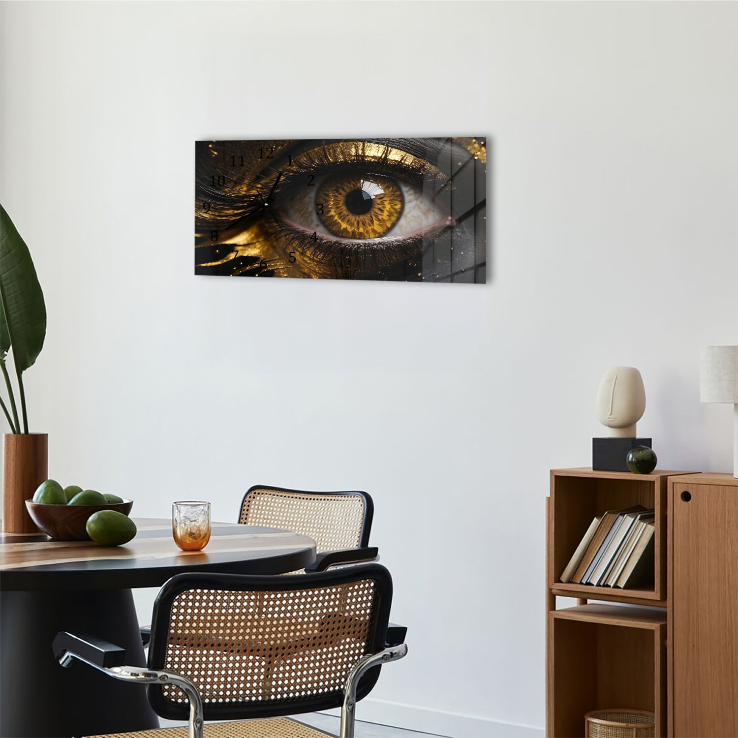 Wanduhr 60x30 - Schwarz und goldenes Auge