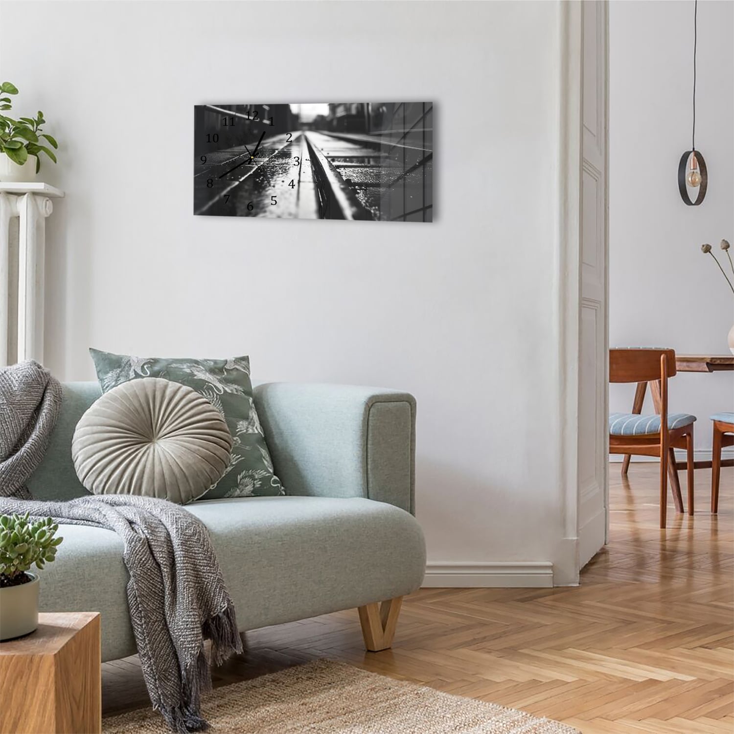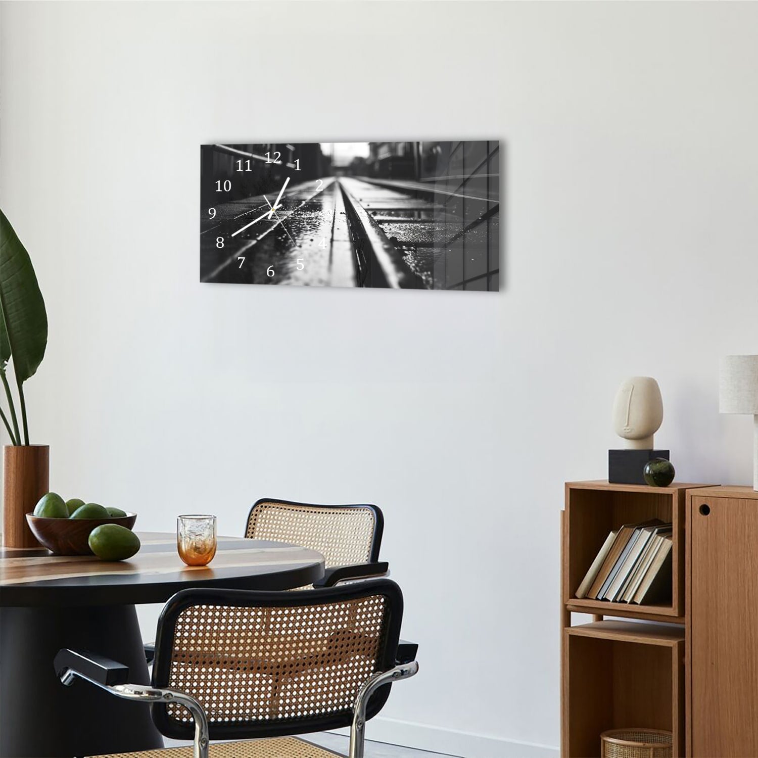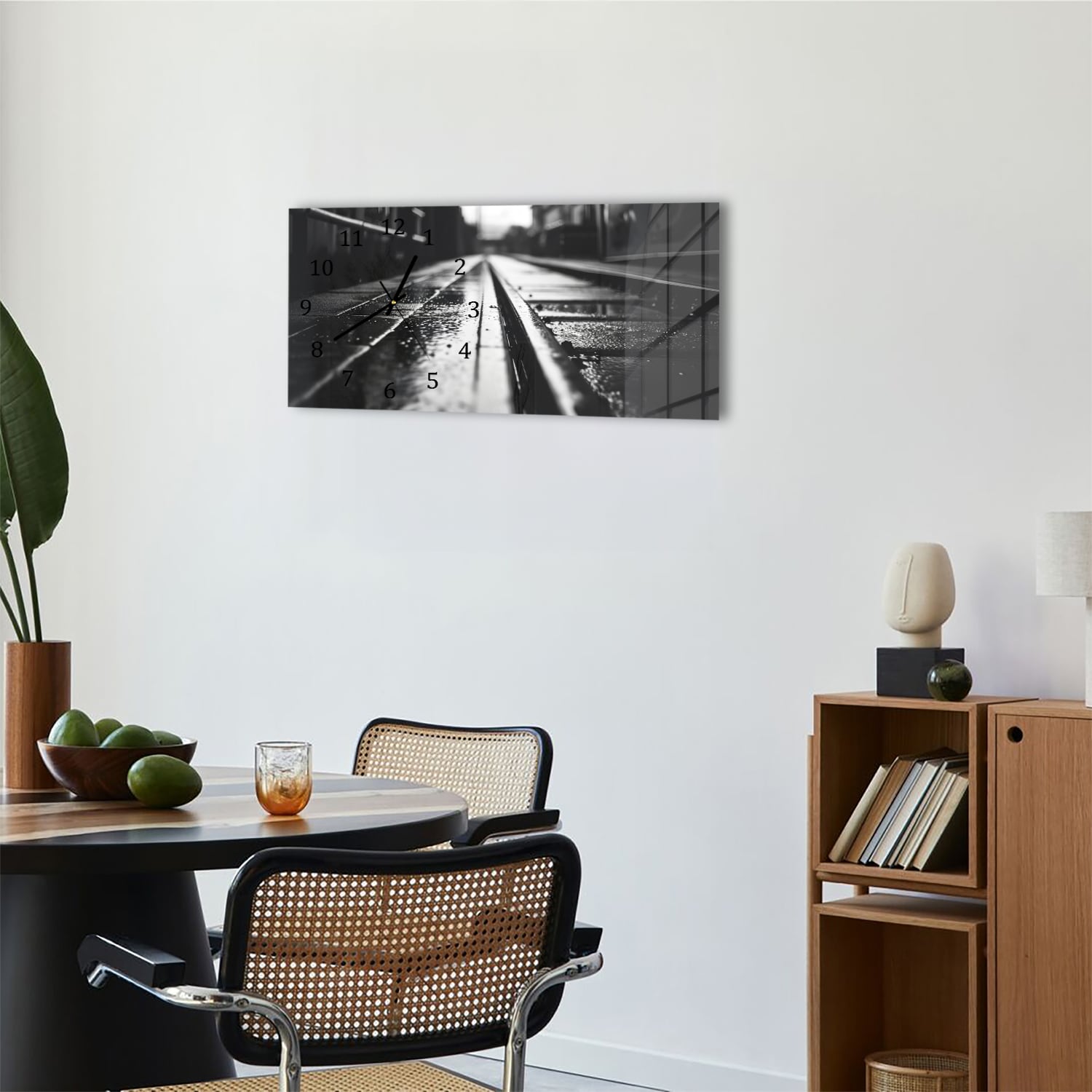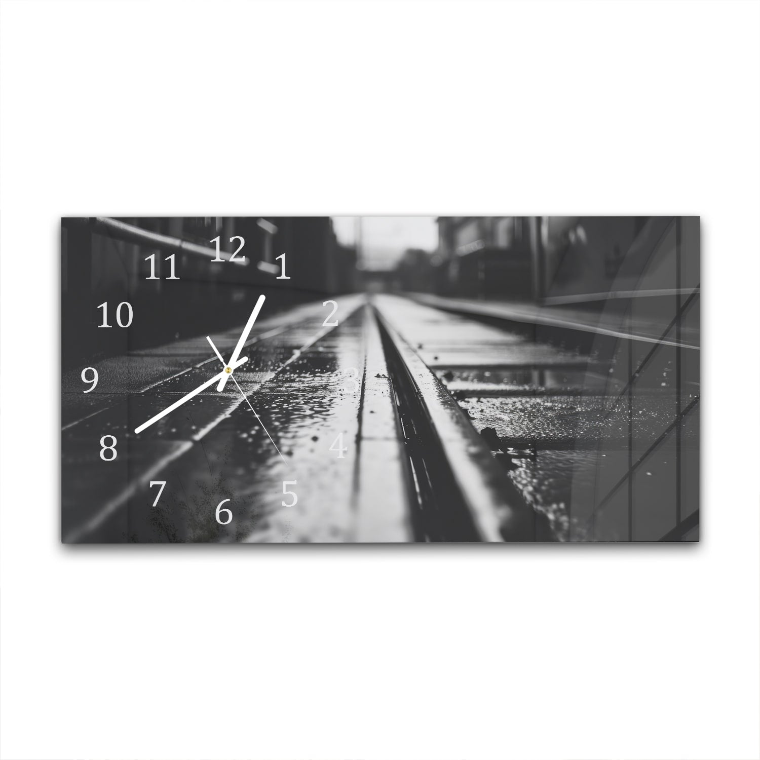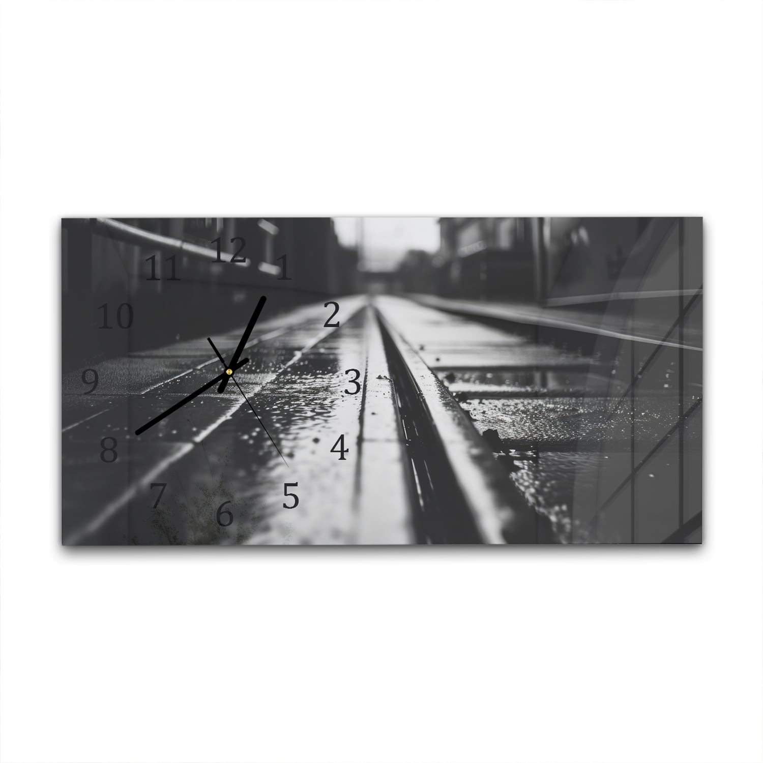 Wanduhr 60x30 - Schwarz-weiß Bahngleis