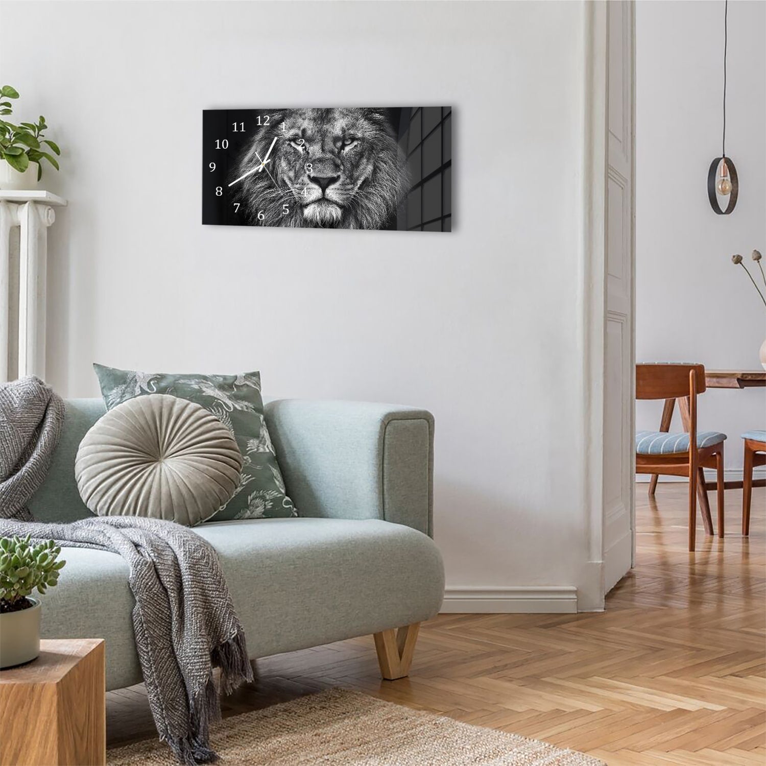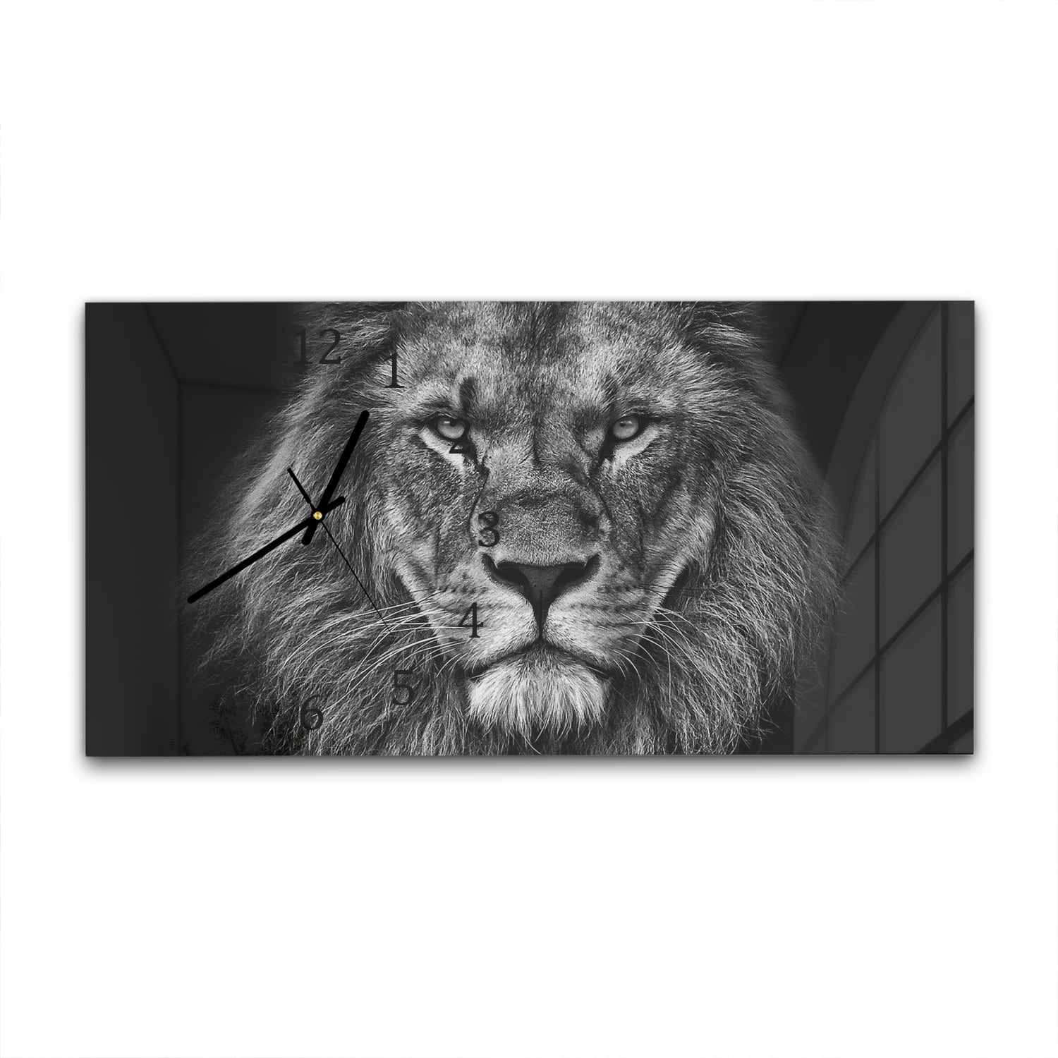 Wanduhr 60x30 - Schwarz/Weiß Löwe