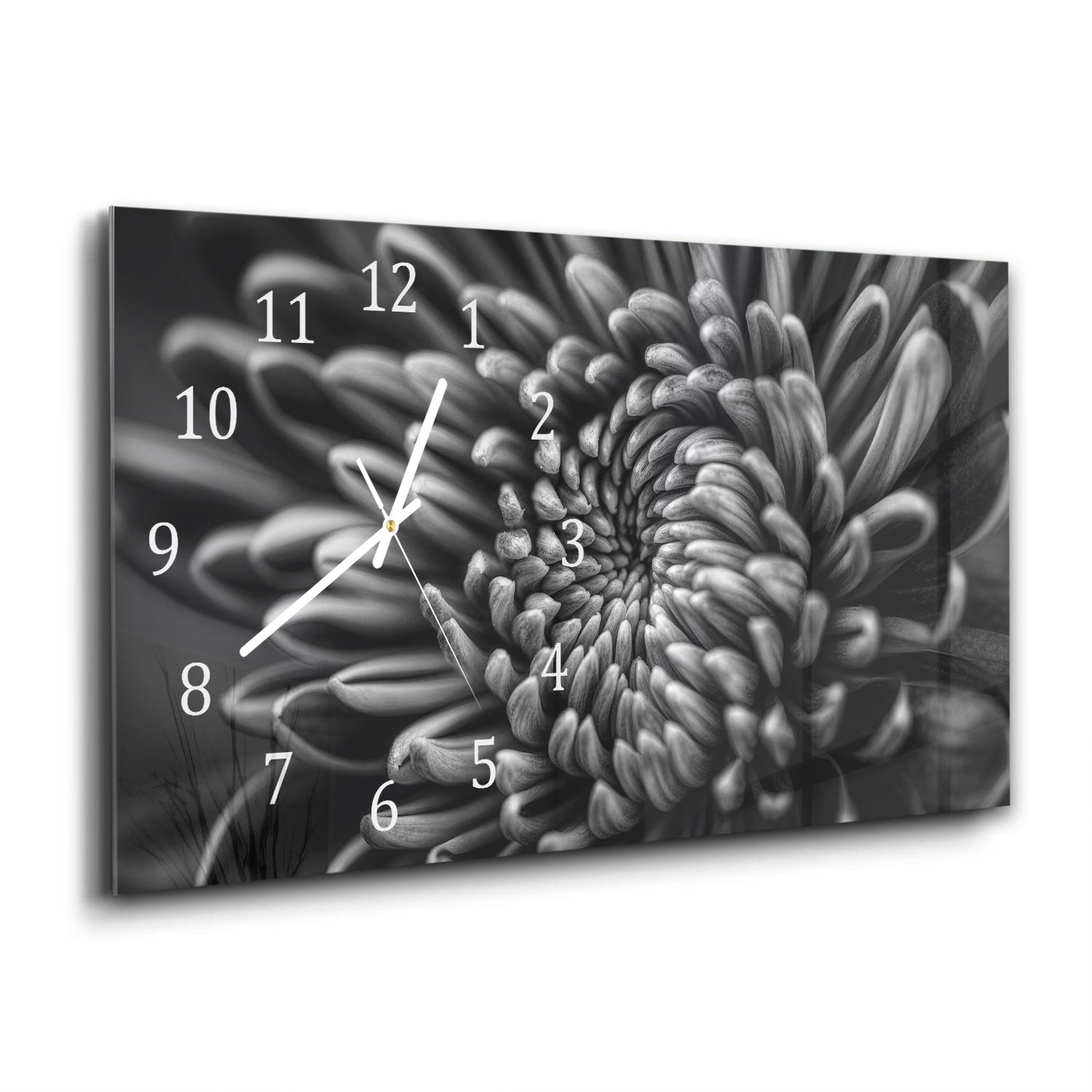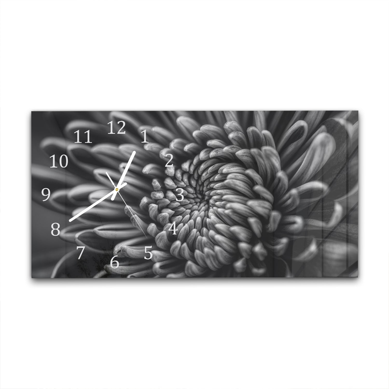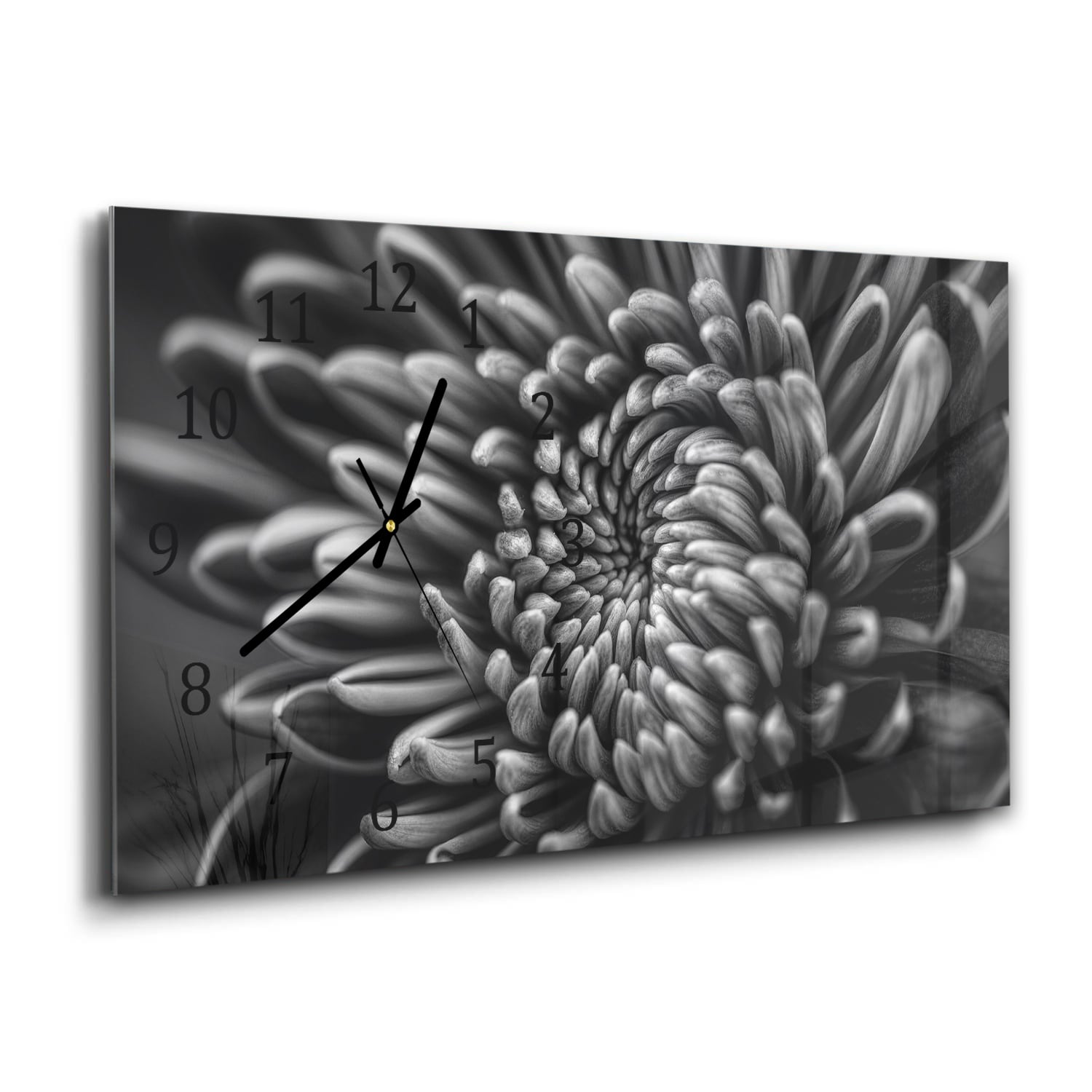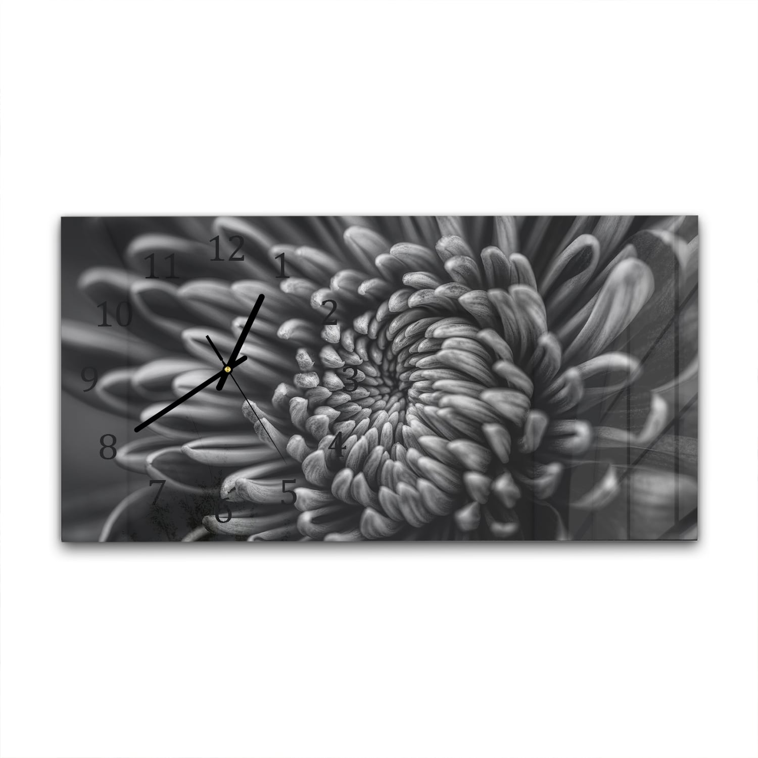 Wanduhr 60x30 - Schwarz-weiß Nahaufnahme Blume