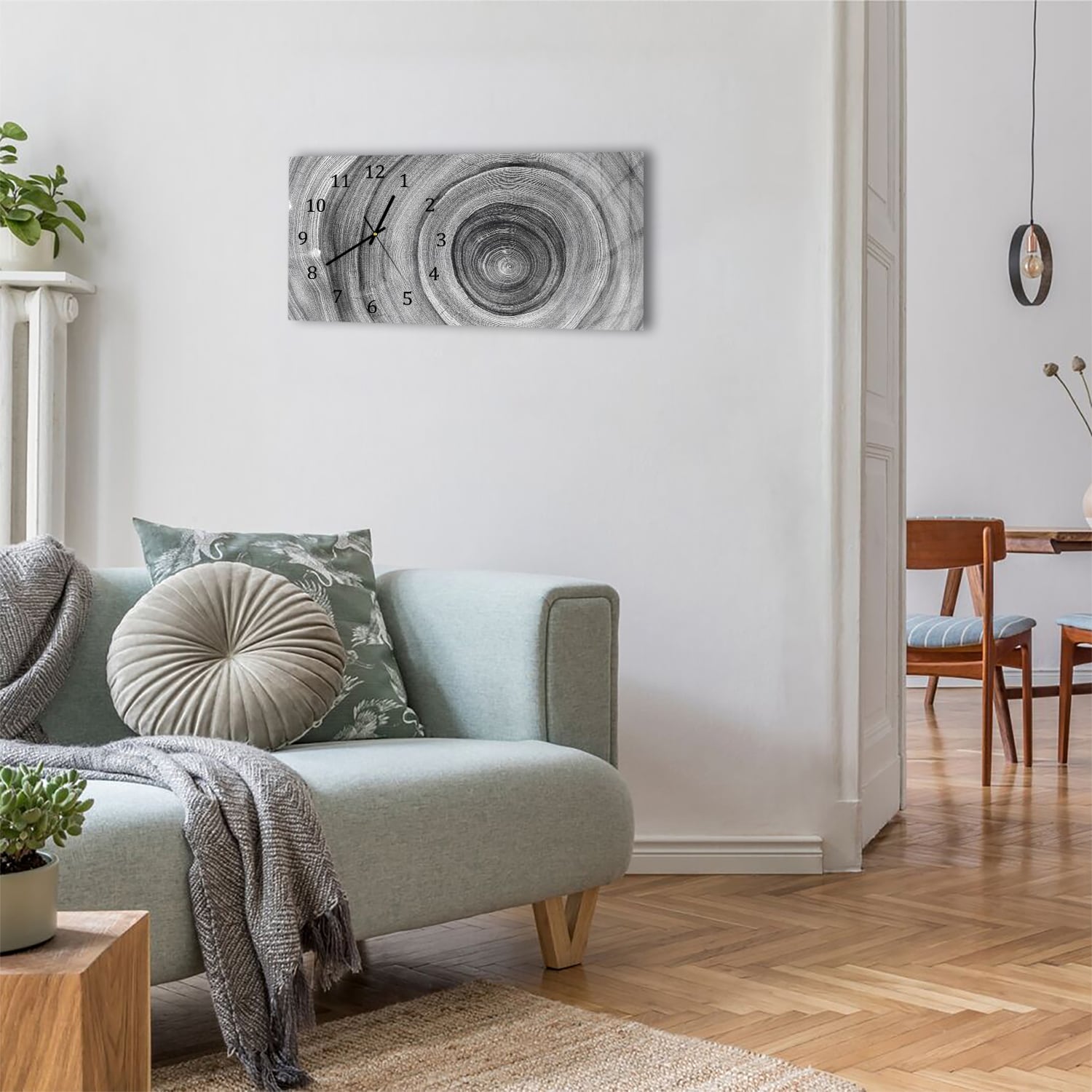 Wanduhr 60x30 - Schwarz-weiße Baumringe