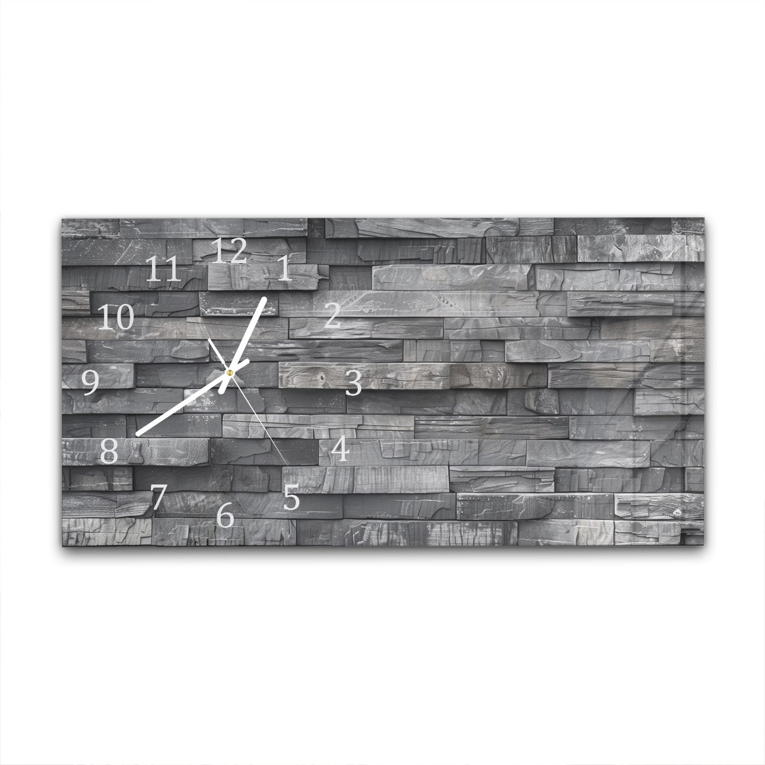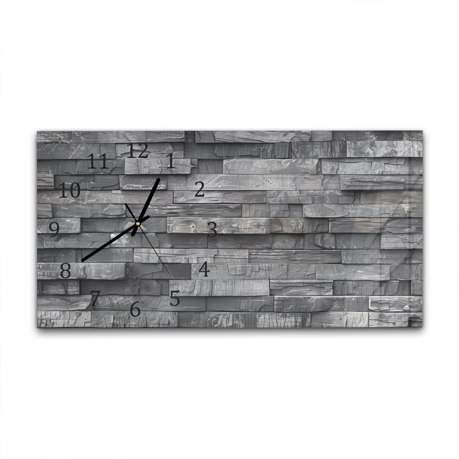 Wanduhr 60x30 - Schwarze Steinmauer in Schwarz-Weiß