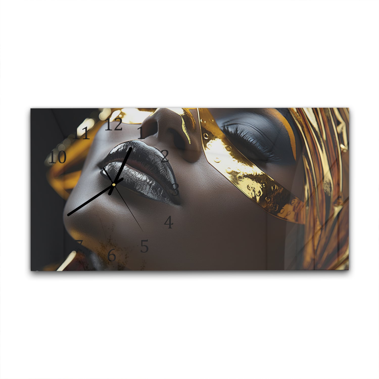 Wanduhr 60x30 - Schwarzes Gesicht mit goldener Schminke