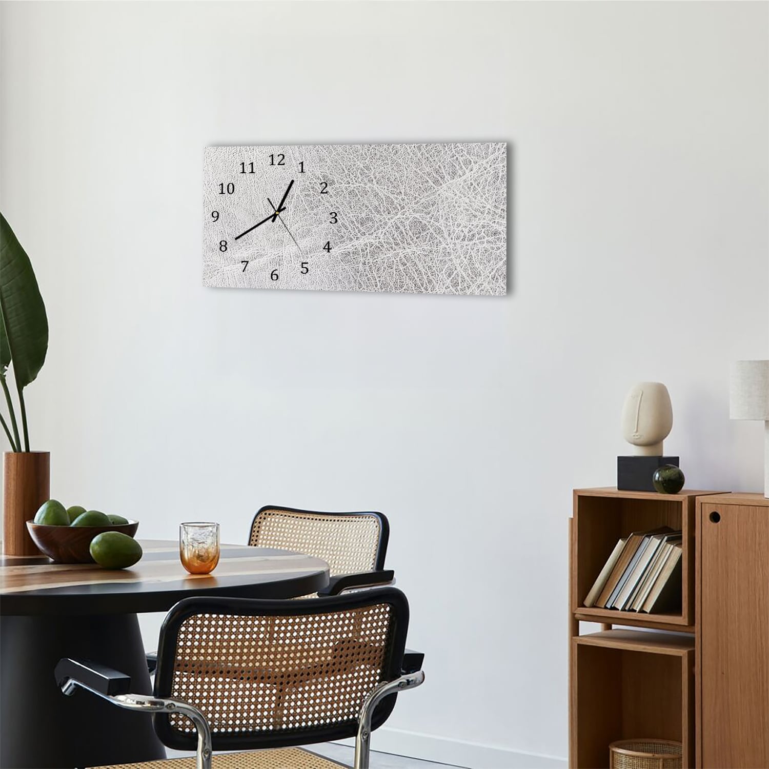 Wanduhr 60x30 - Silbernes Leder Nahaufnahme