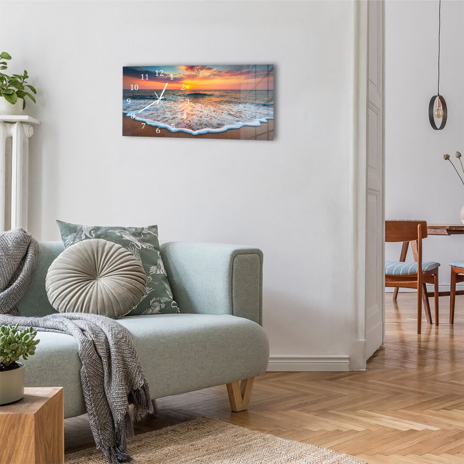 Wanduhr 60x30 - Sonnenaufgang am Meer