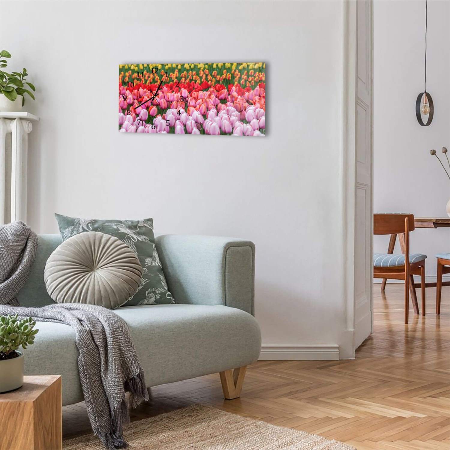 Wanduhr 60x30 - Tulpenfeld in Lisse