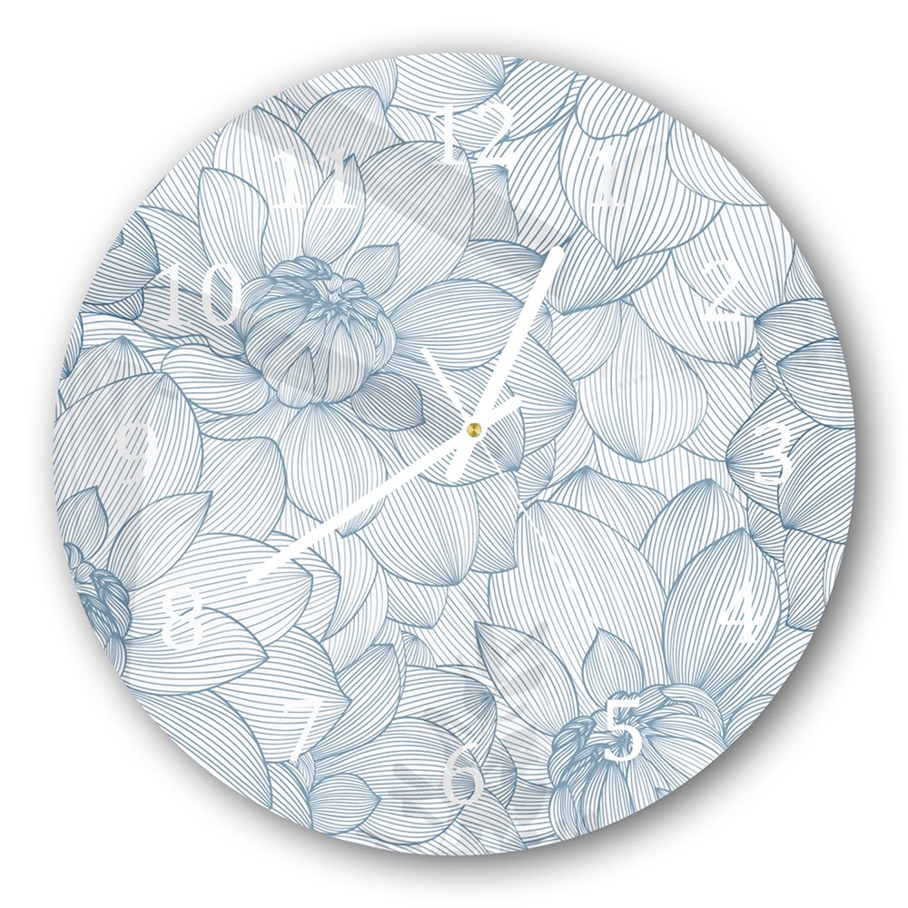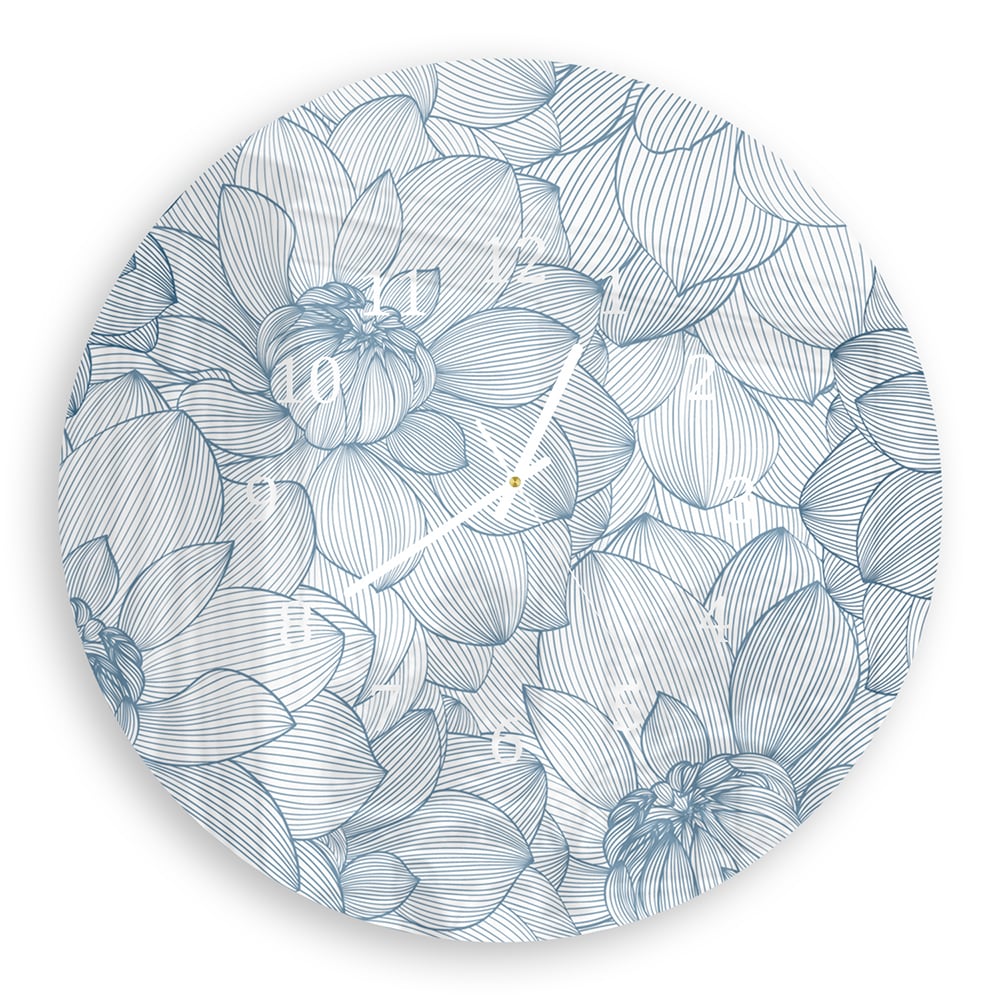 Wanduhr Rund - Gezeichnete Dahlienblüten