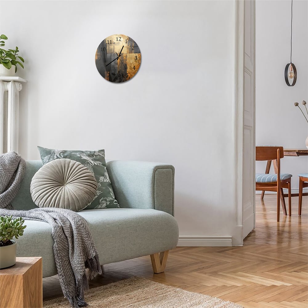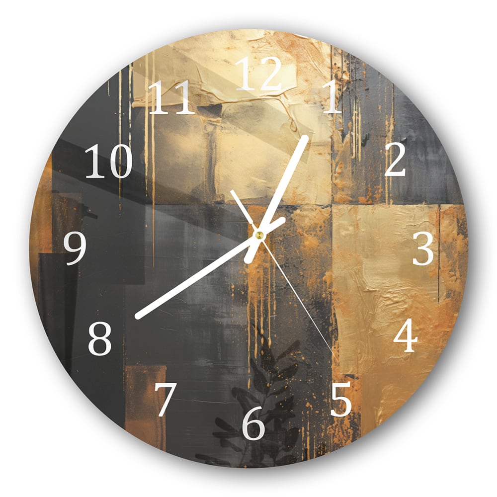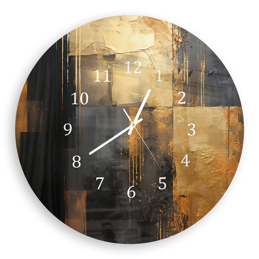 Wanduhr Rund - Gold/Schwarz abstraktes Gemälde