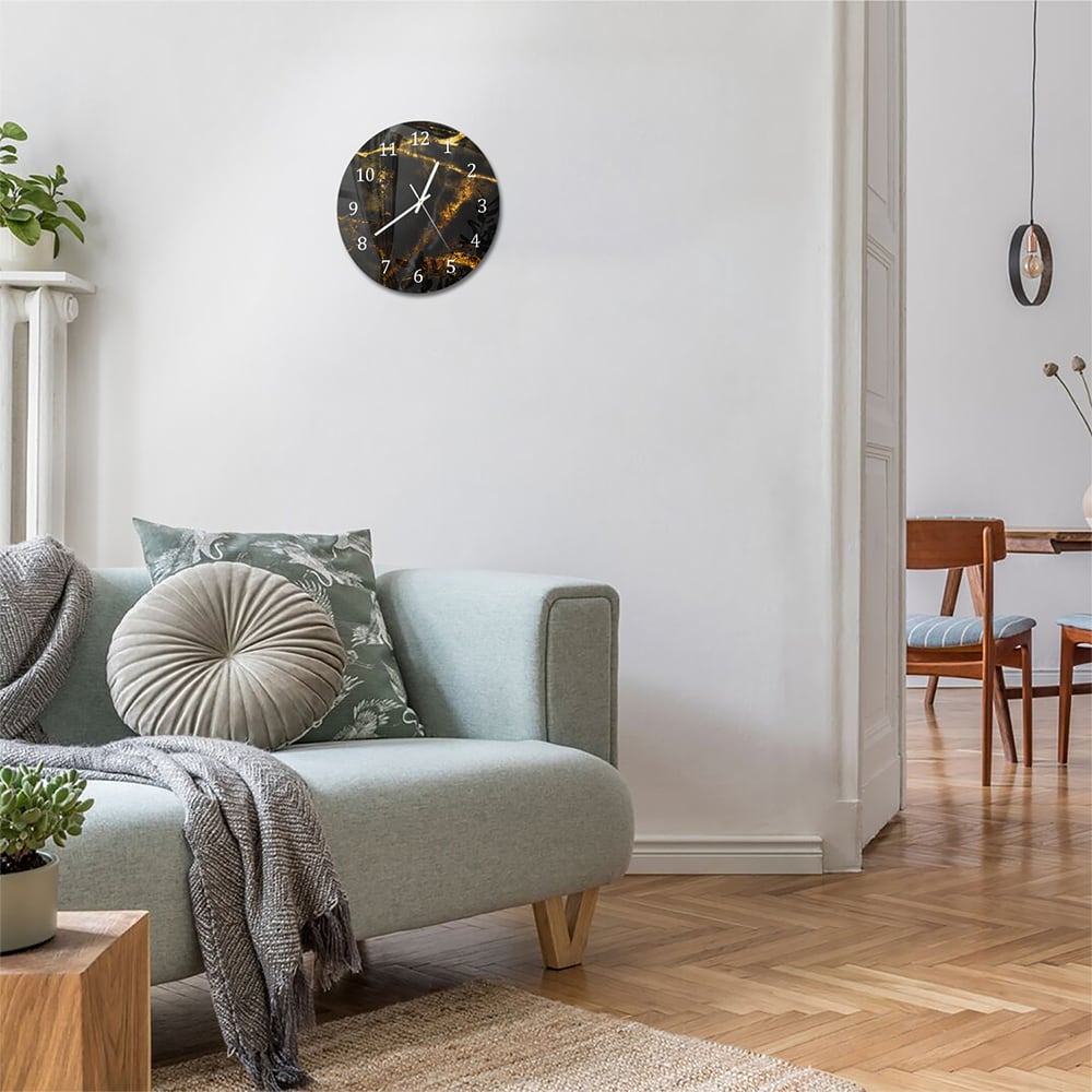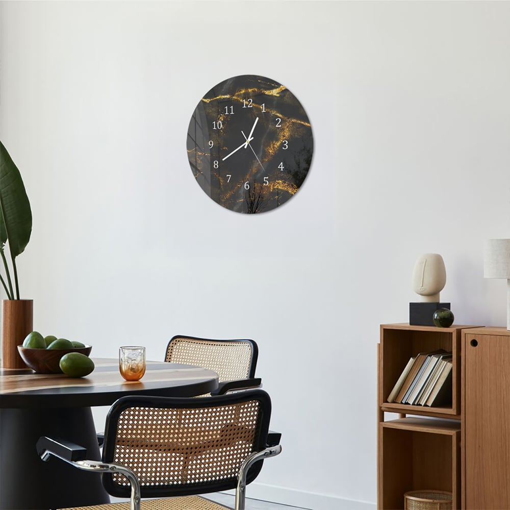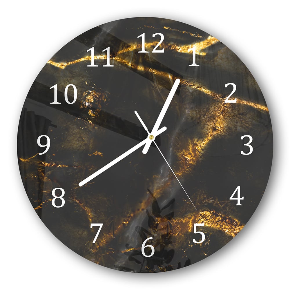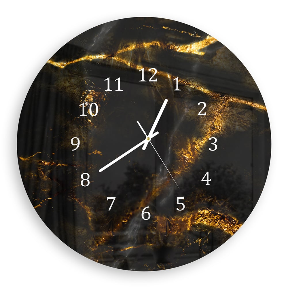 Wanduhr Rund - Goldene Adern auf schwarzem Marmor