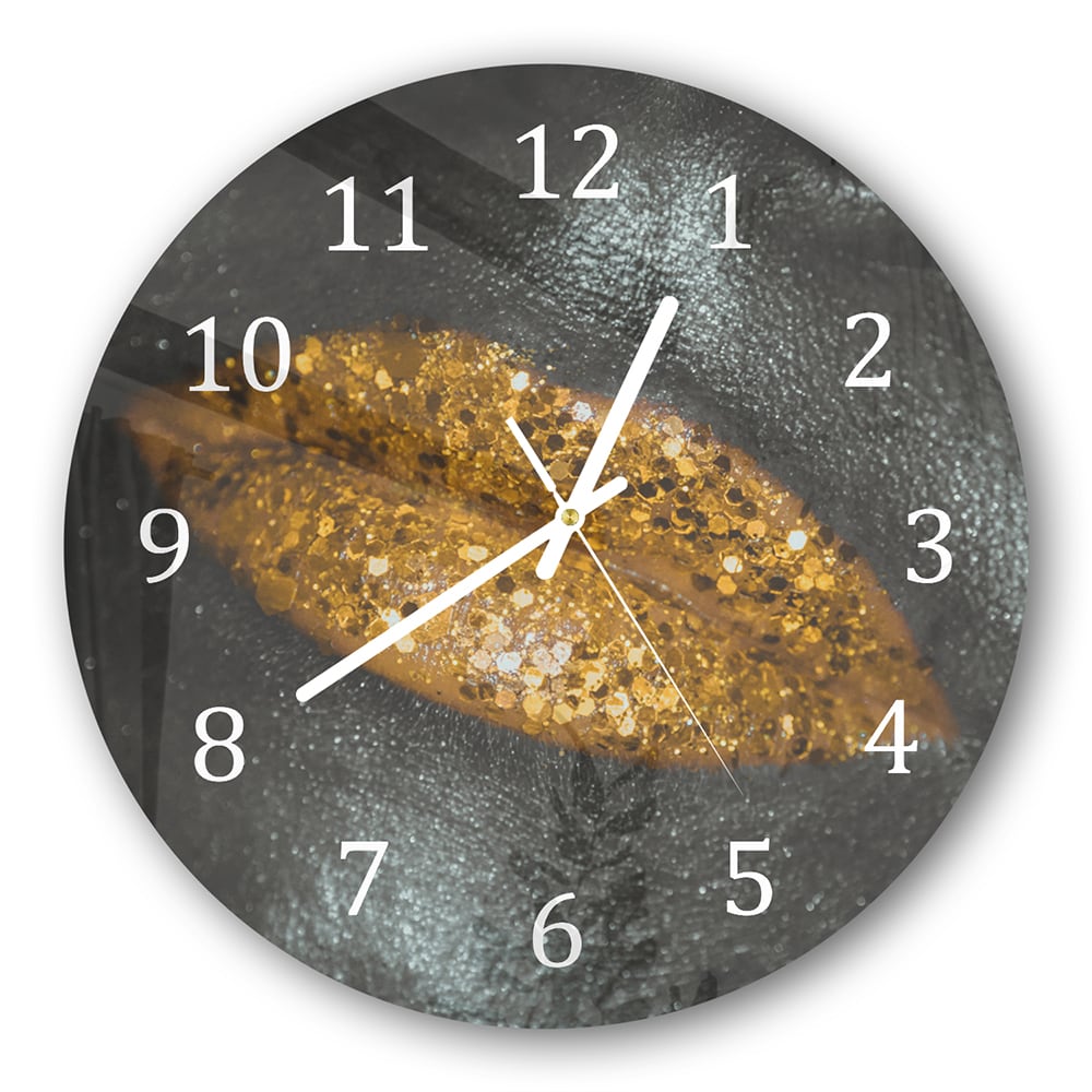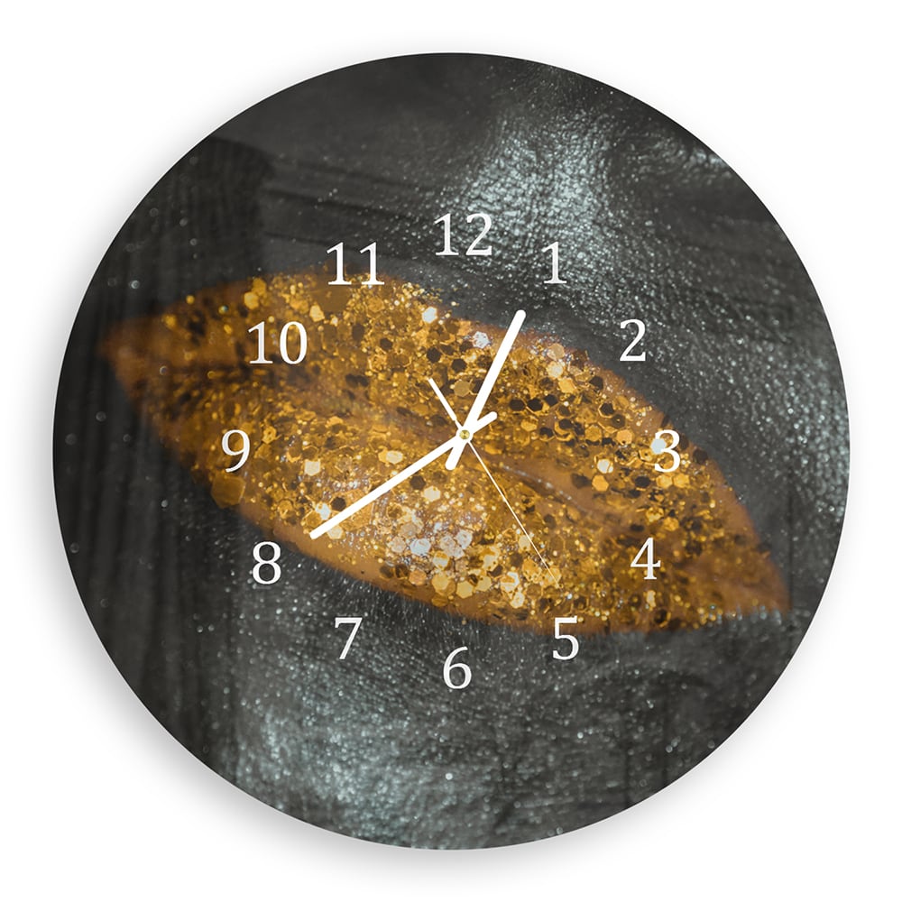 Wanduhr Rund - Goldene Glitzerlippen